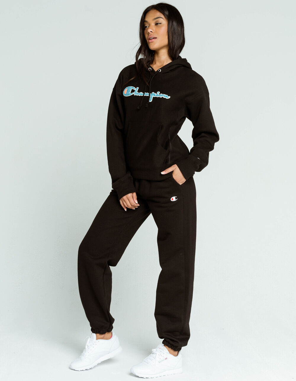 reverse weave chenille script hoodie