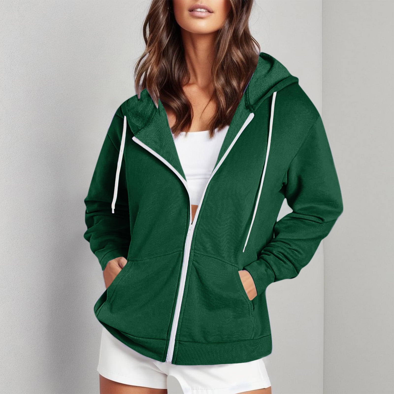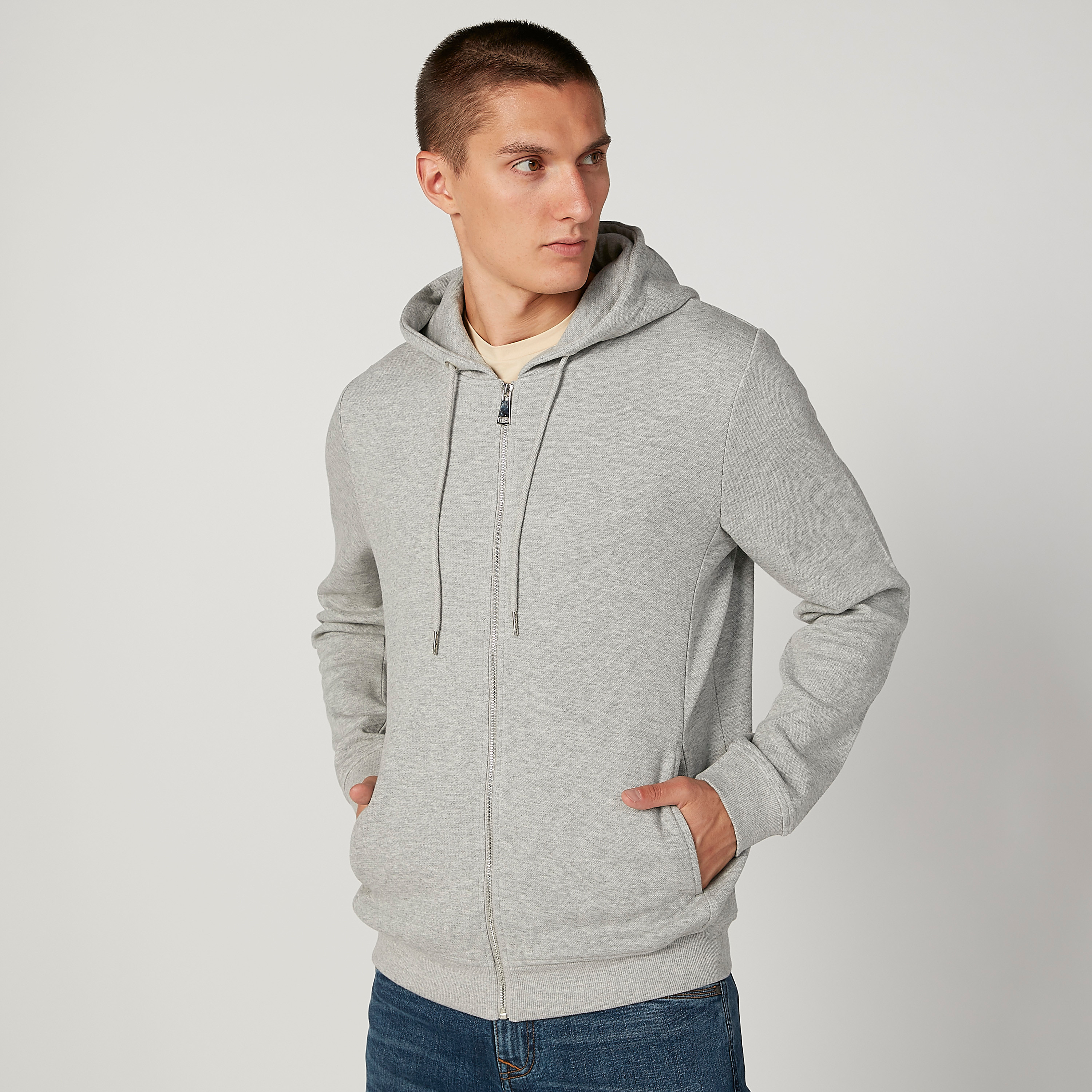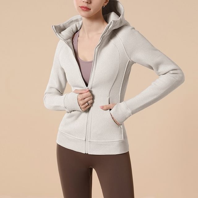 slim plain zipper hooded jacket