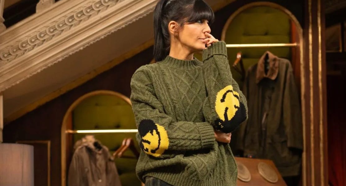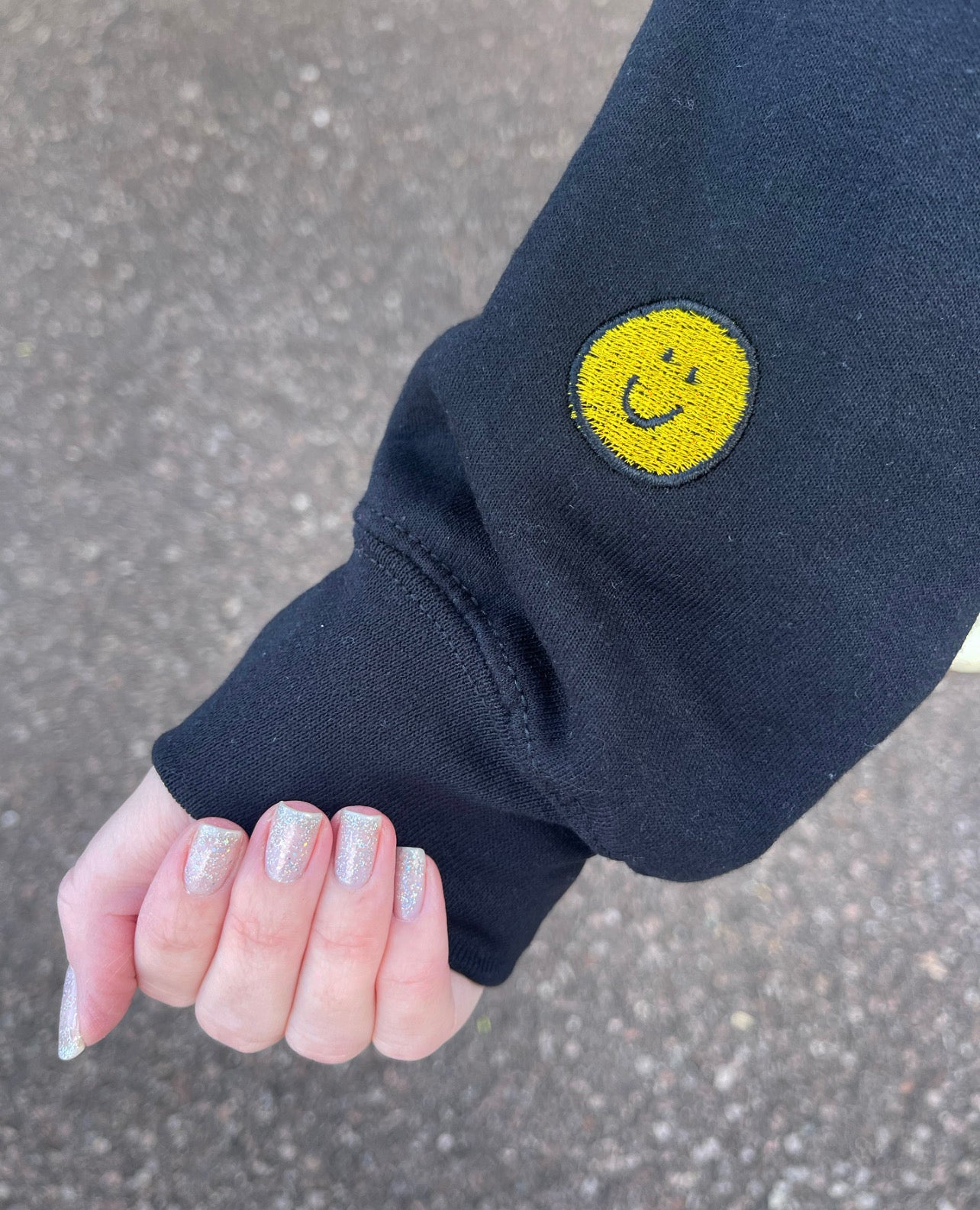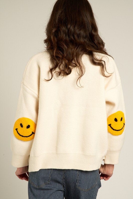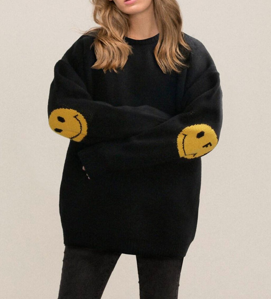 smiley face elbow sweater