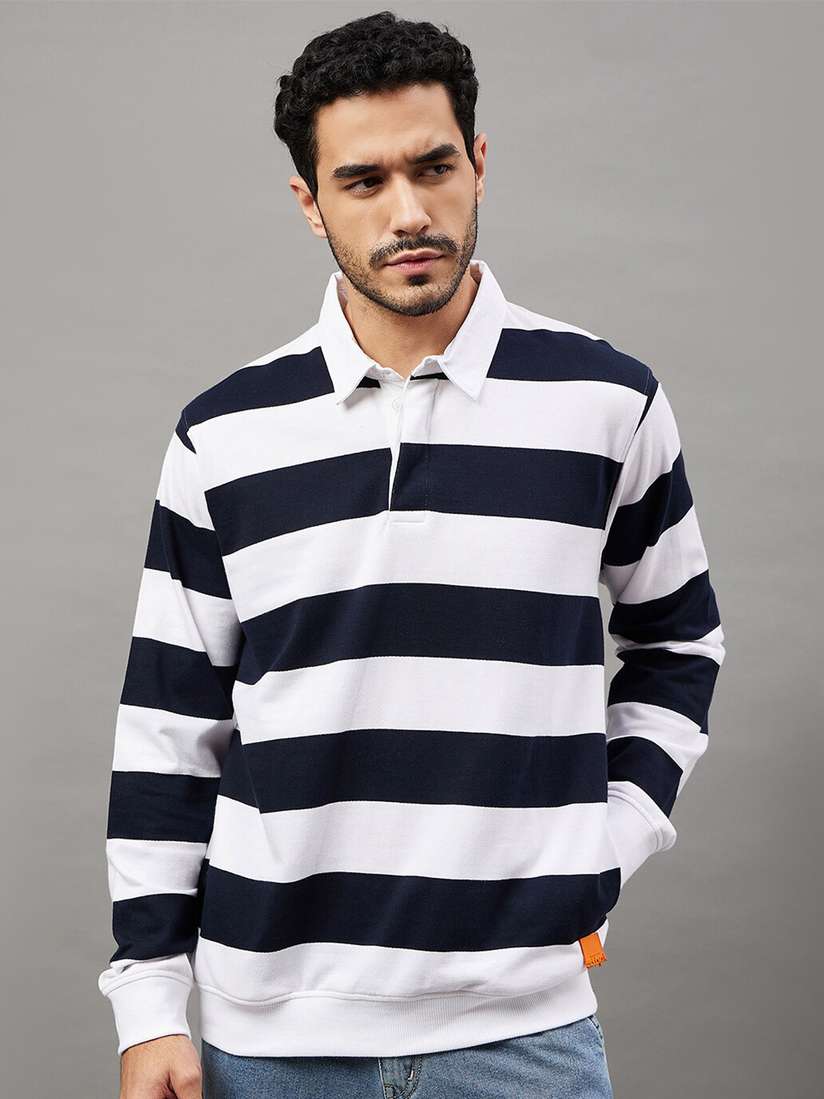 striped collared sweatshirt