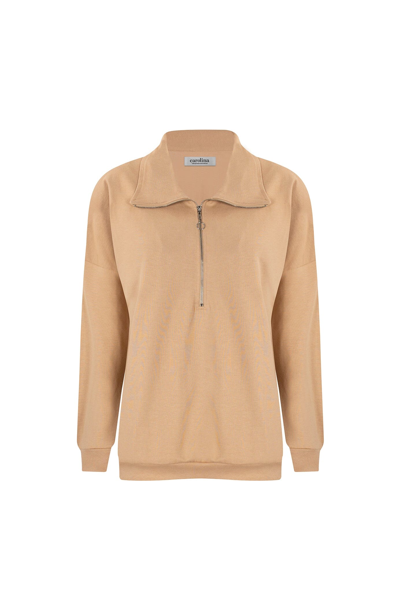 tan half zip pullover