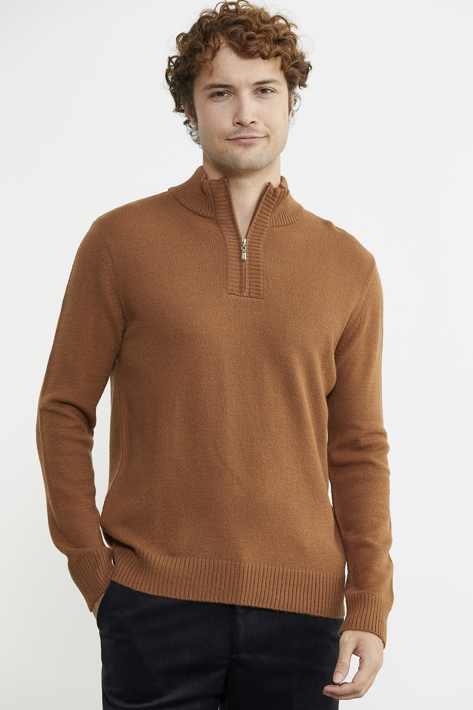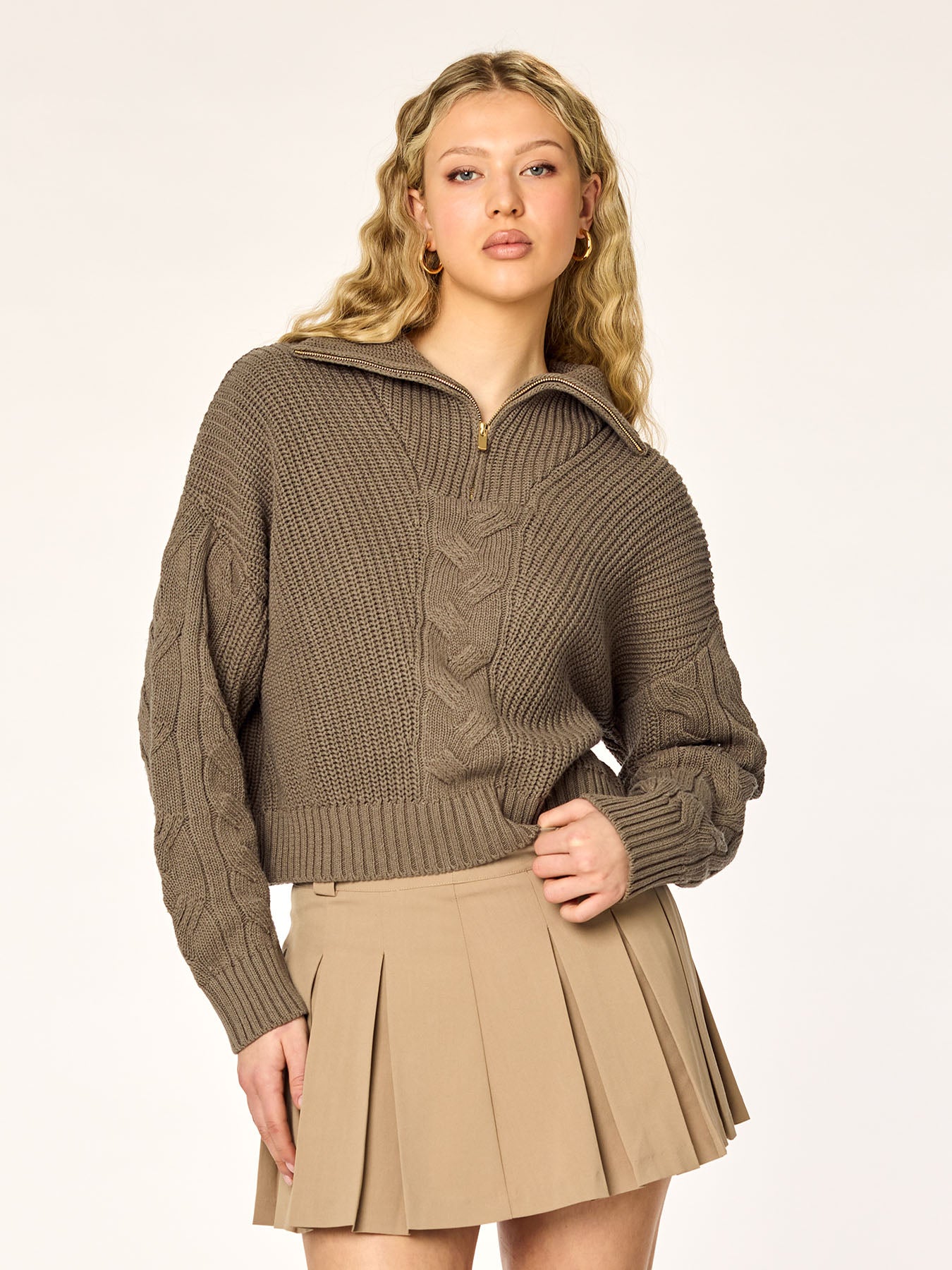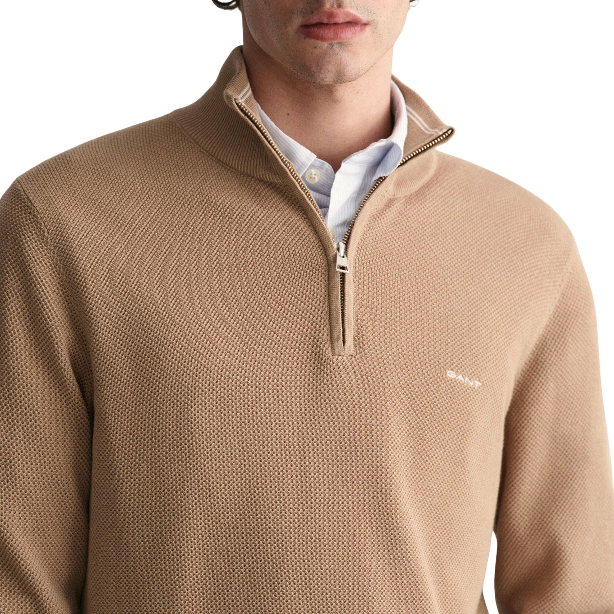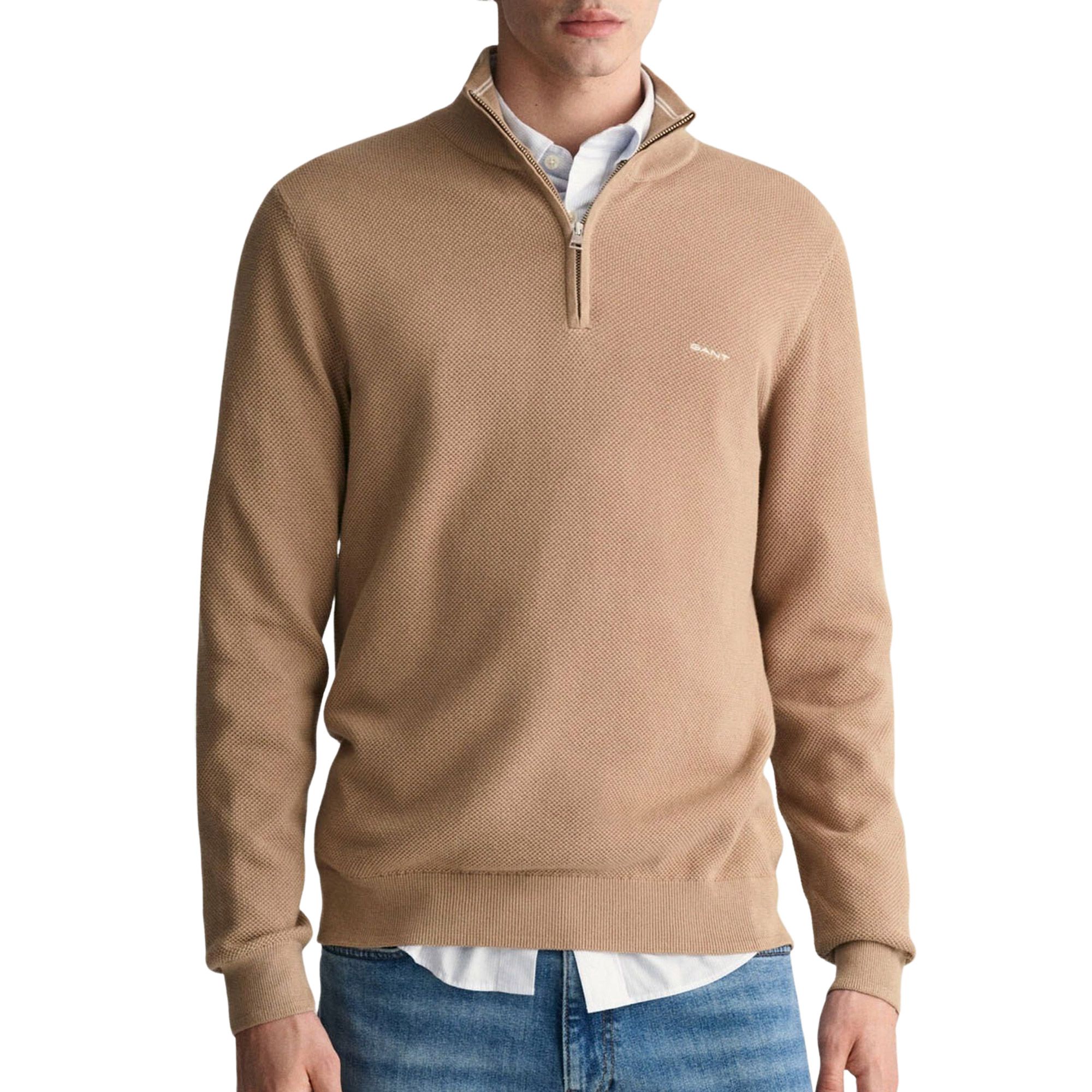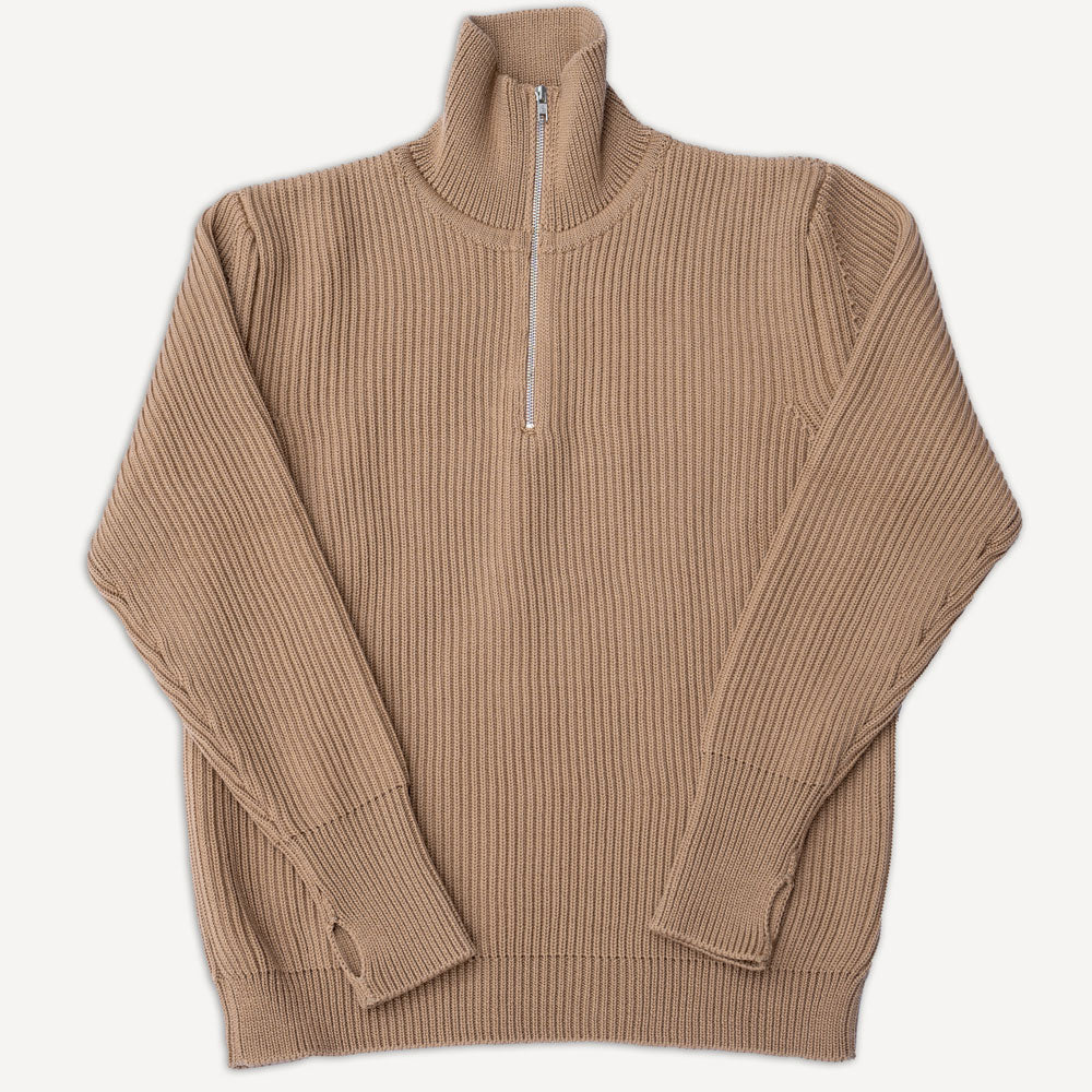 tan half zip sweater