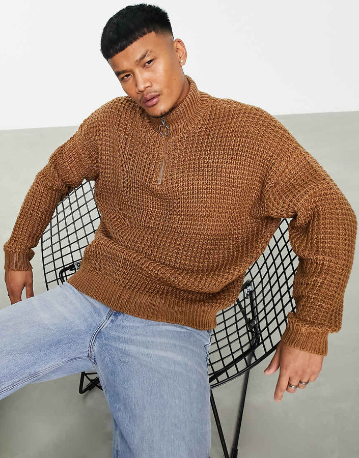 waffle knit half zip pullover
