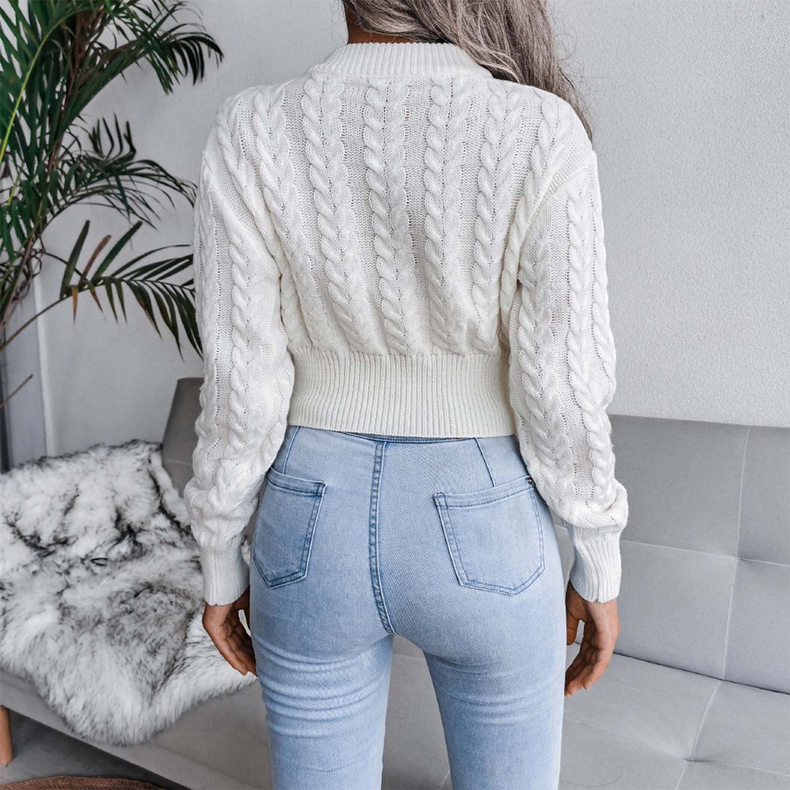 white cropped fuzzy sweater