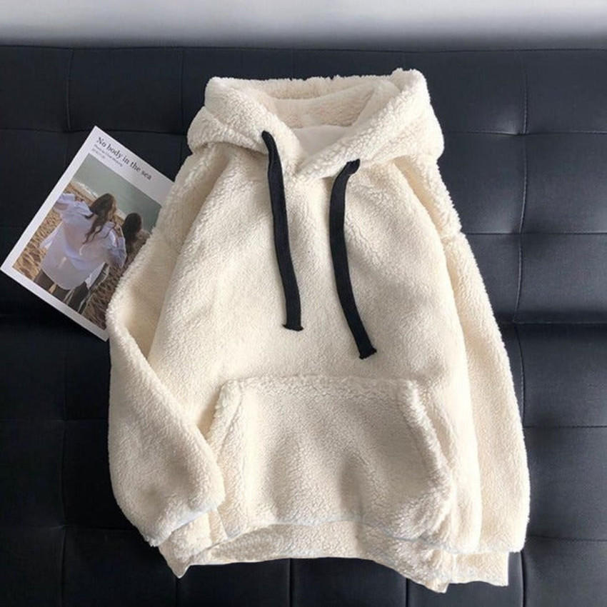 white fur sweatshirt