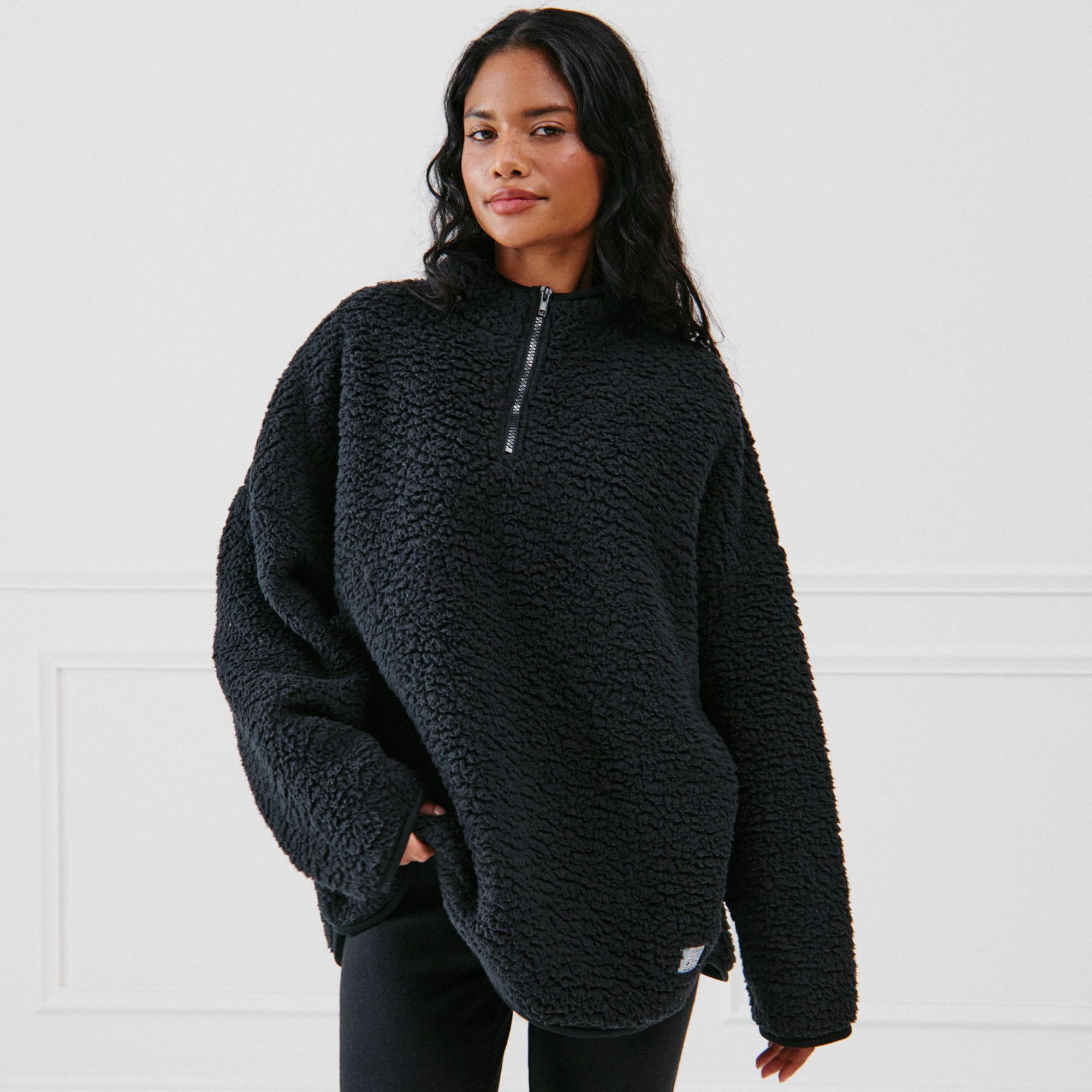 womens black sherpa pullover