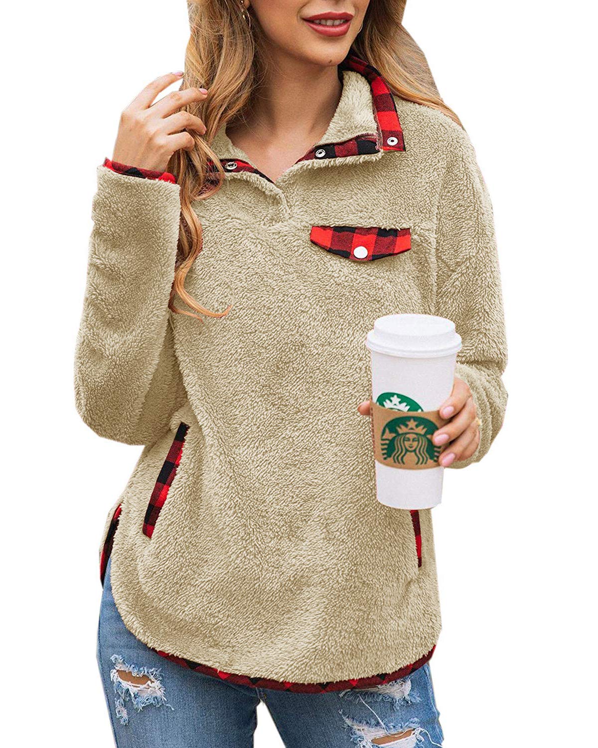 yanekop womens sherpa pullover