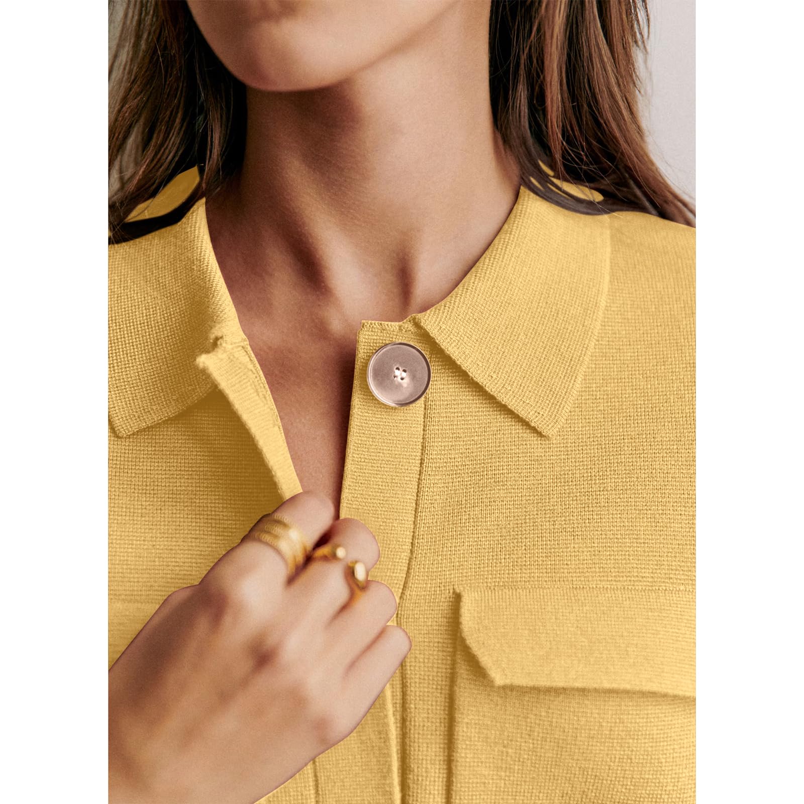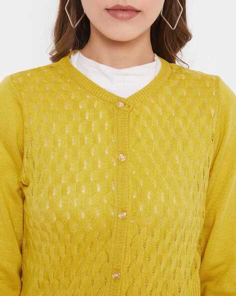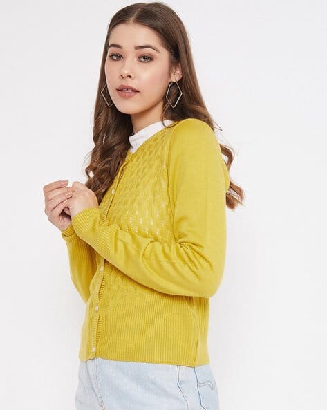yellow button down sweater
