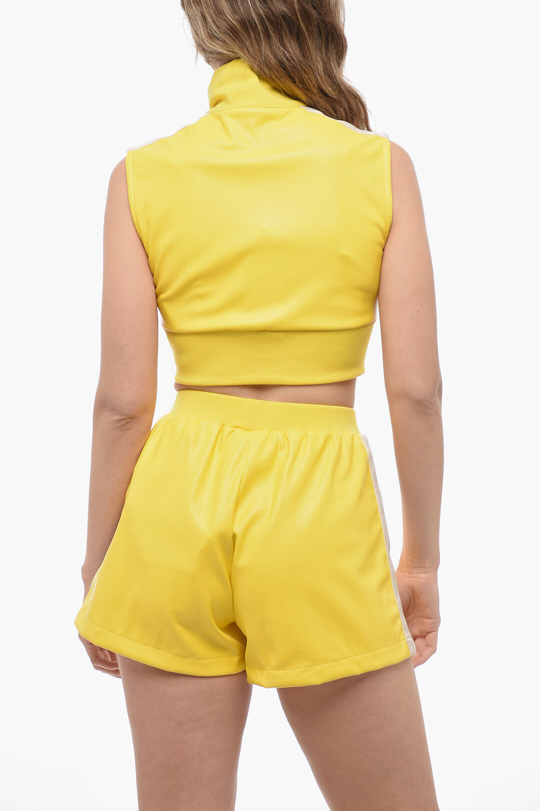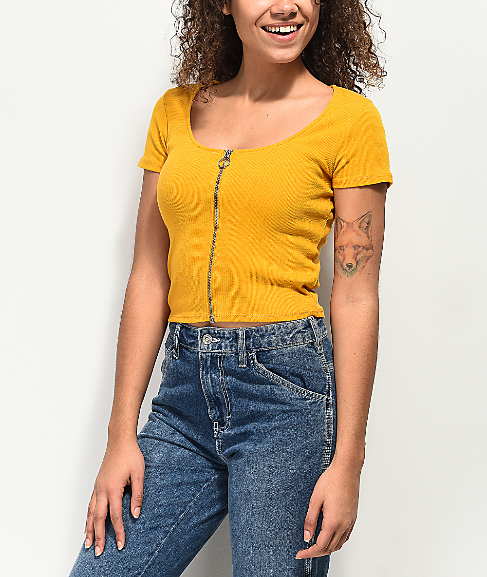yellow zip front crop top