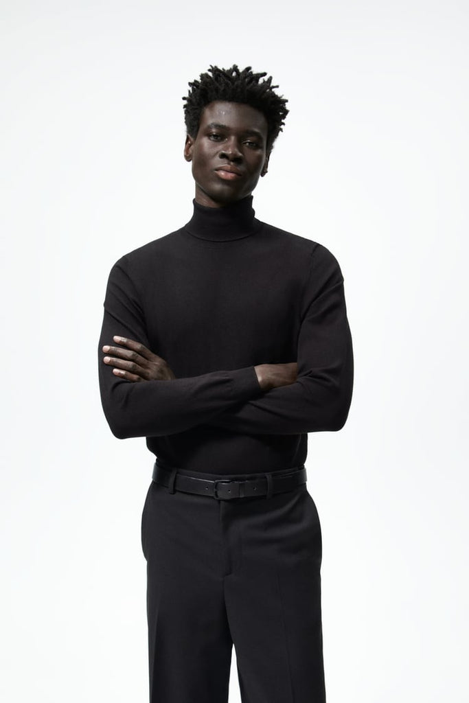 zara turtleneck with pearls