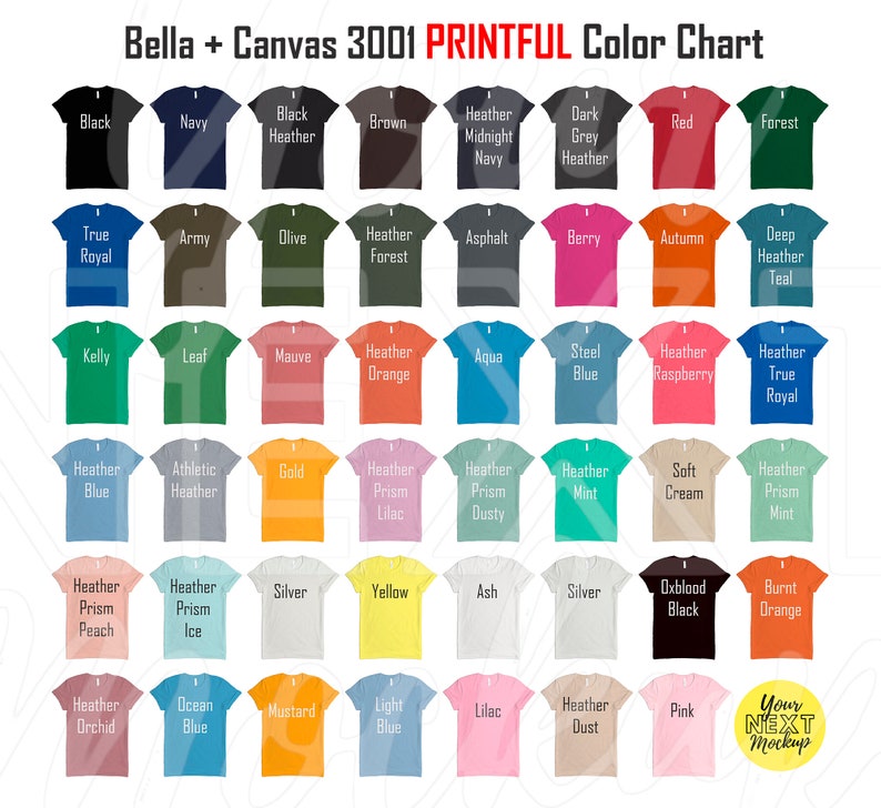 bella canvas 3001 color chart