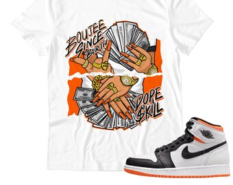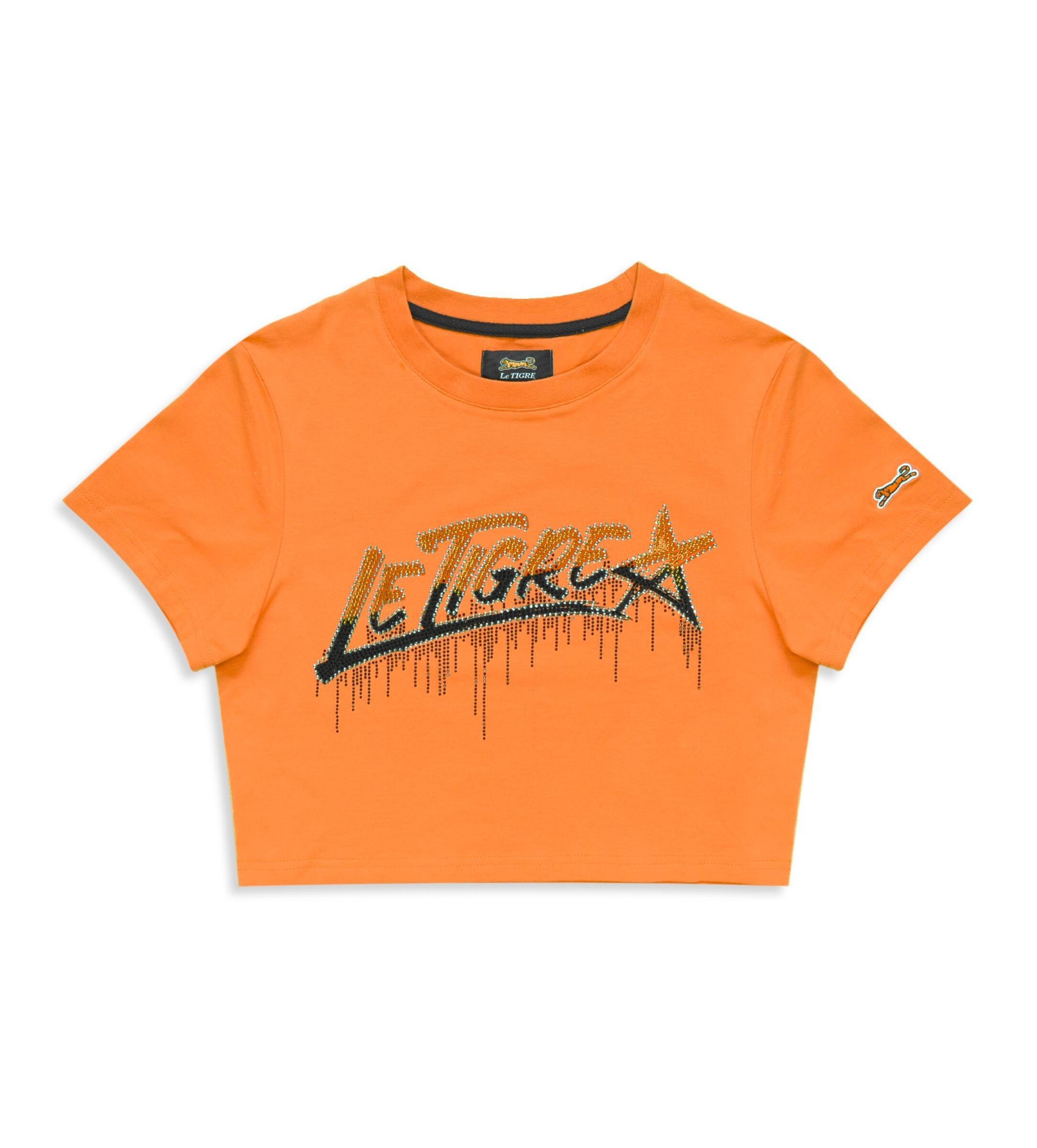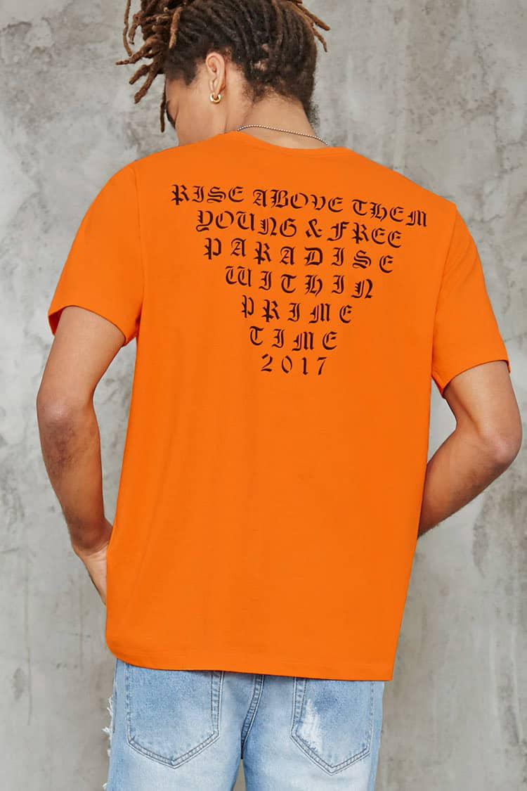 black and orange graphic tee