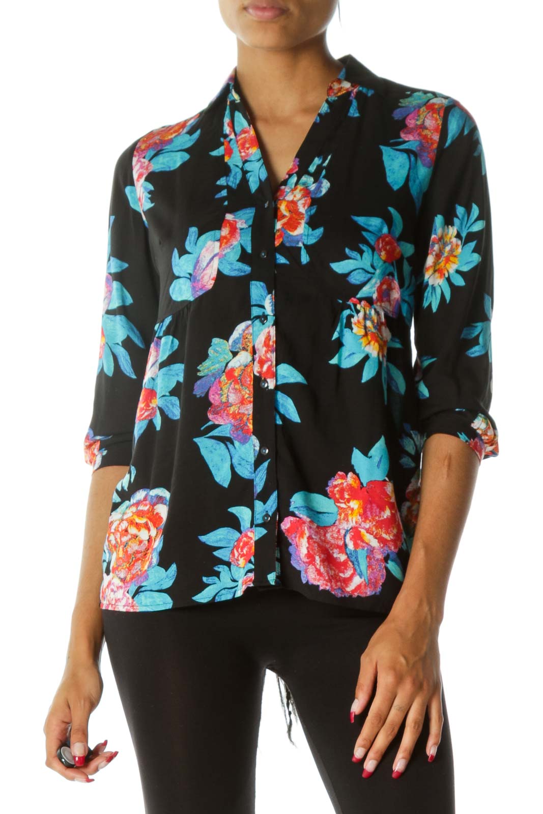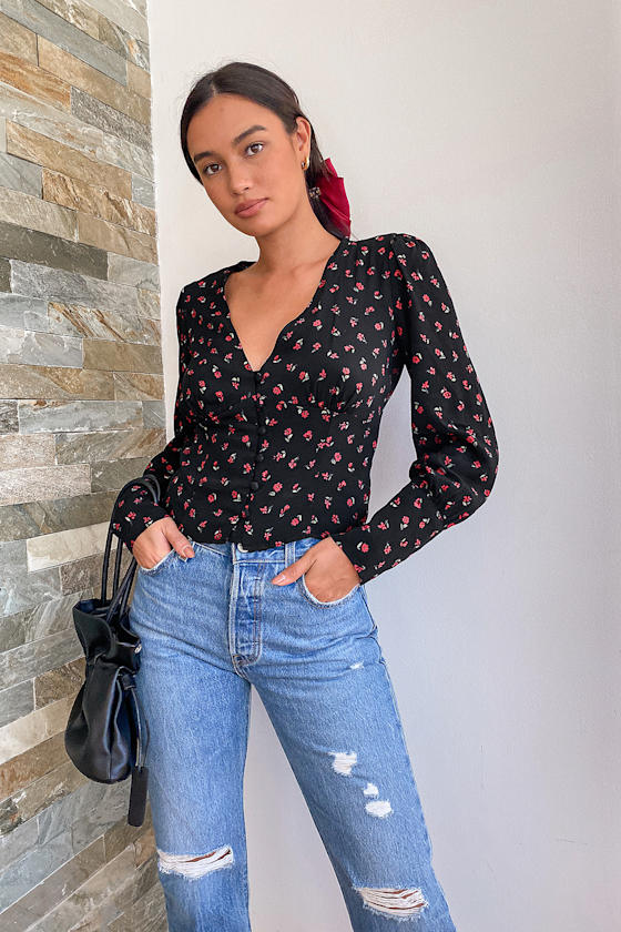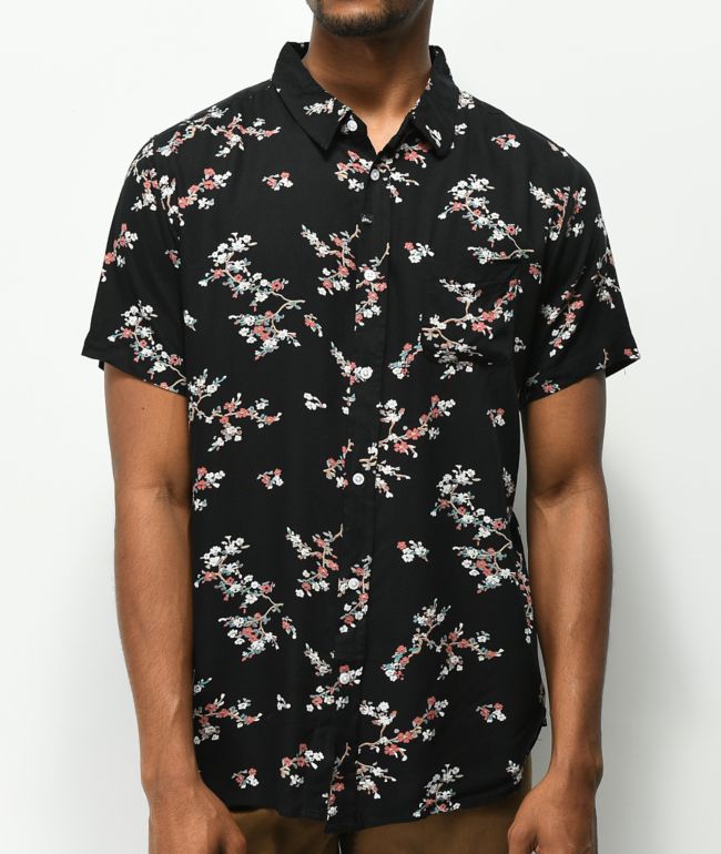 black floral button up