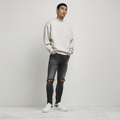 black shirt light jeans