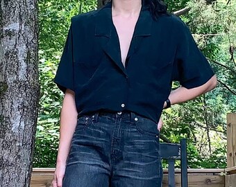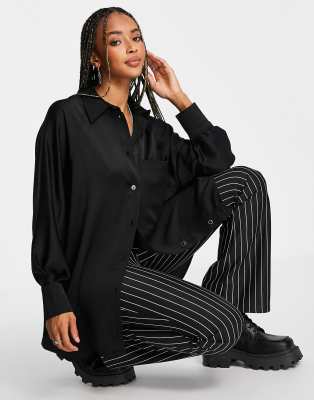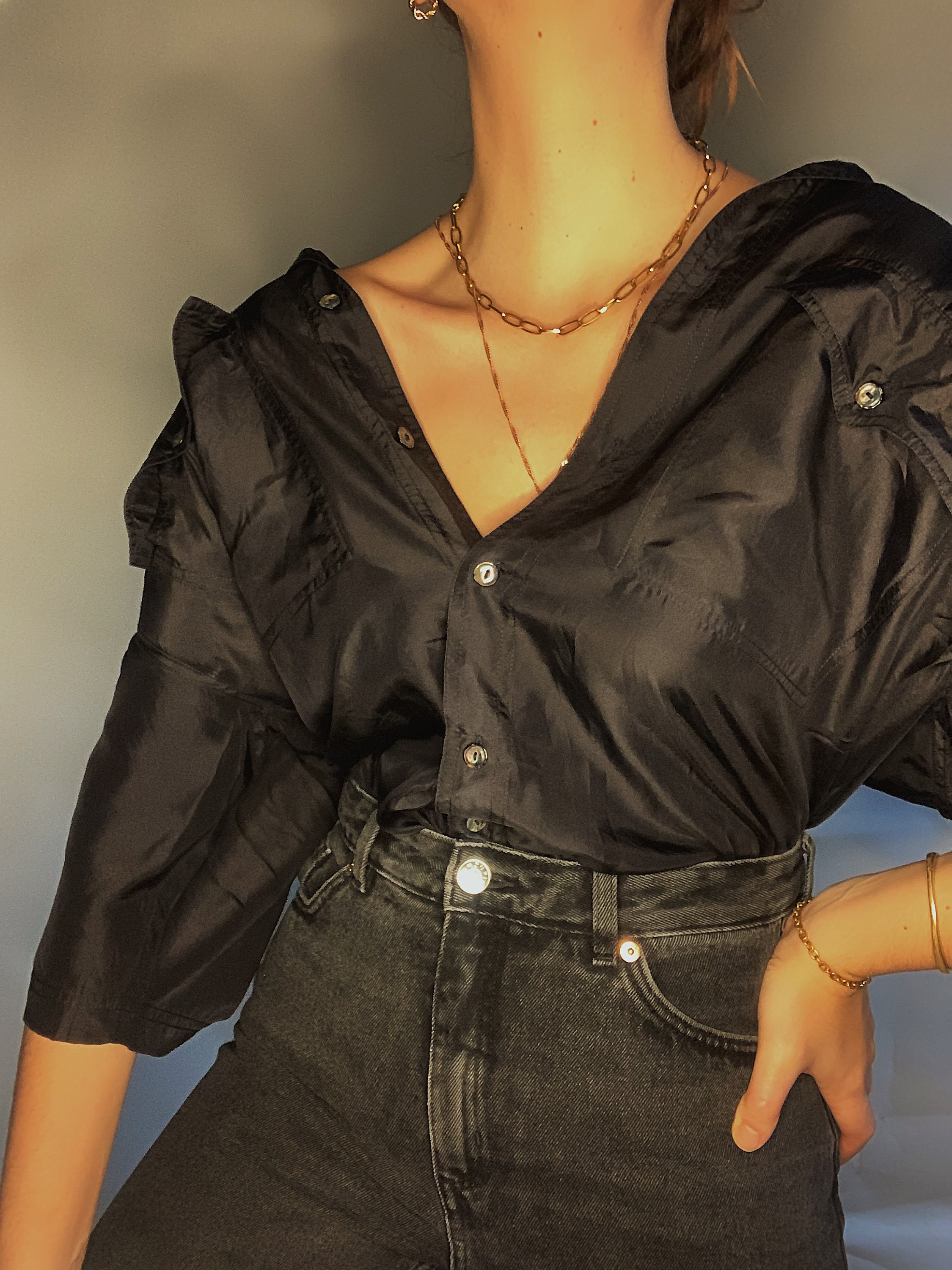 black silk oversized shirt