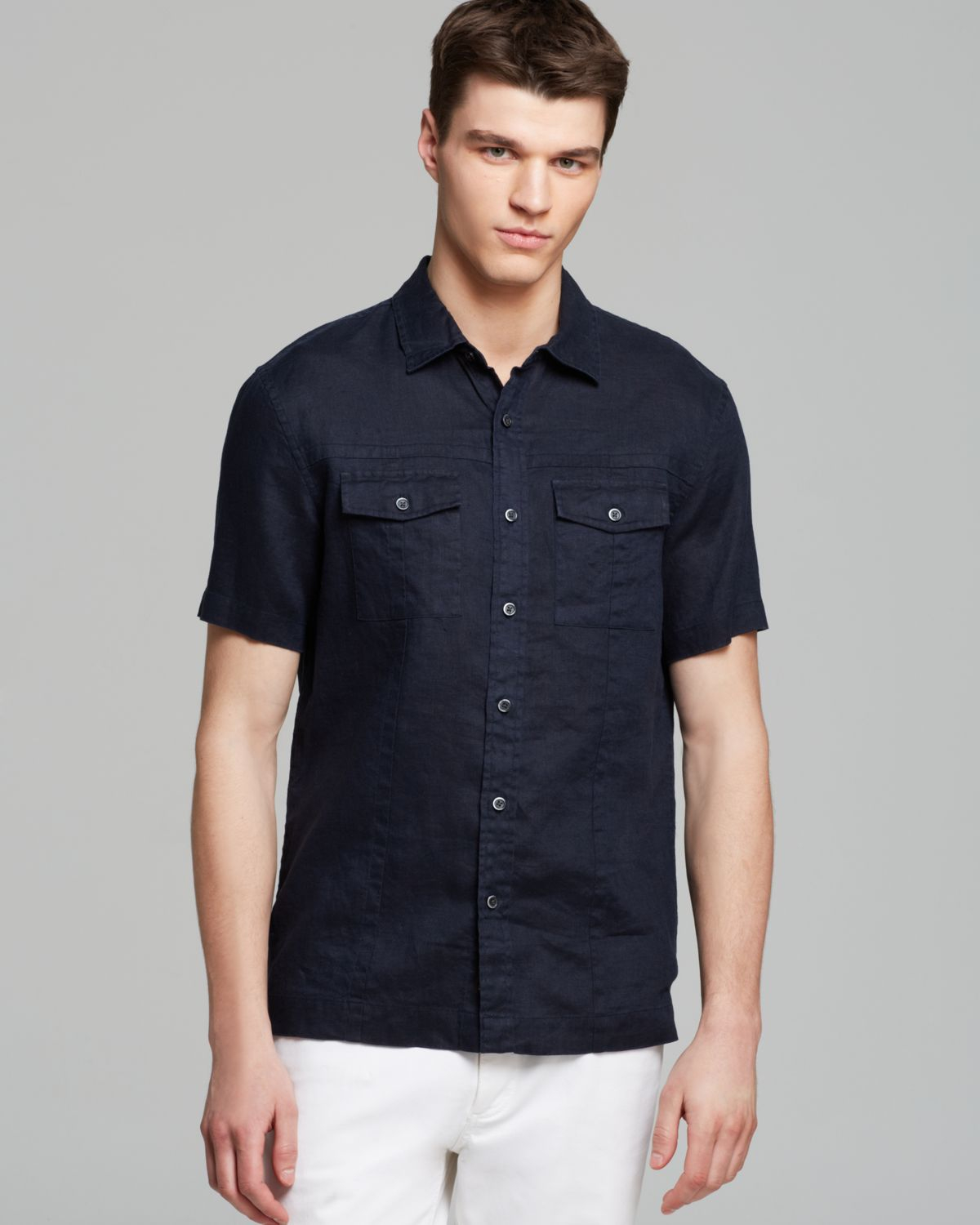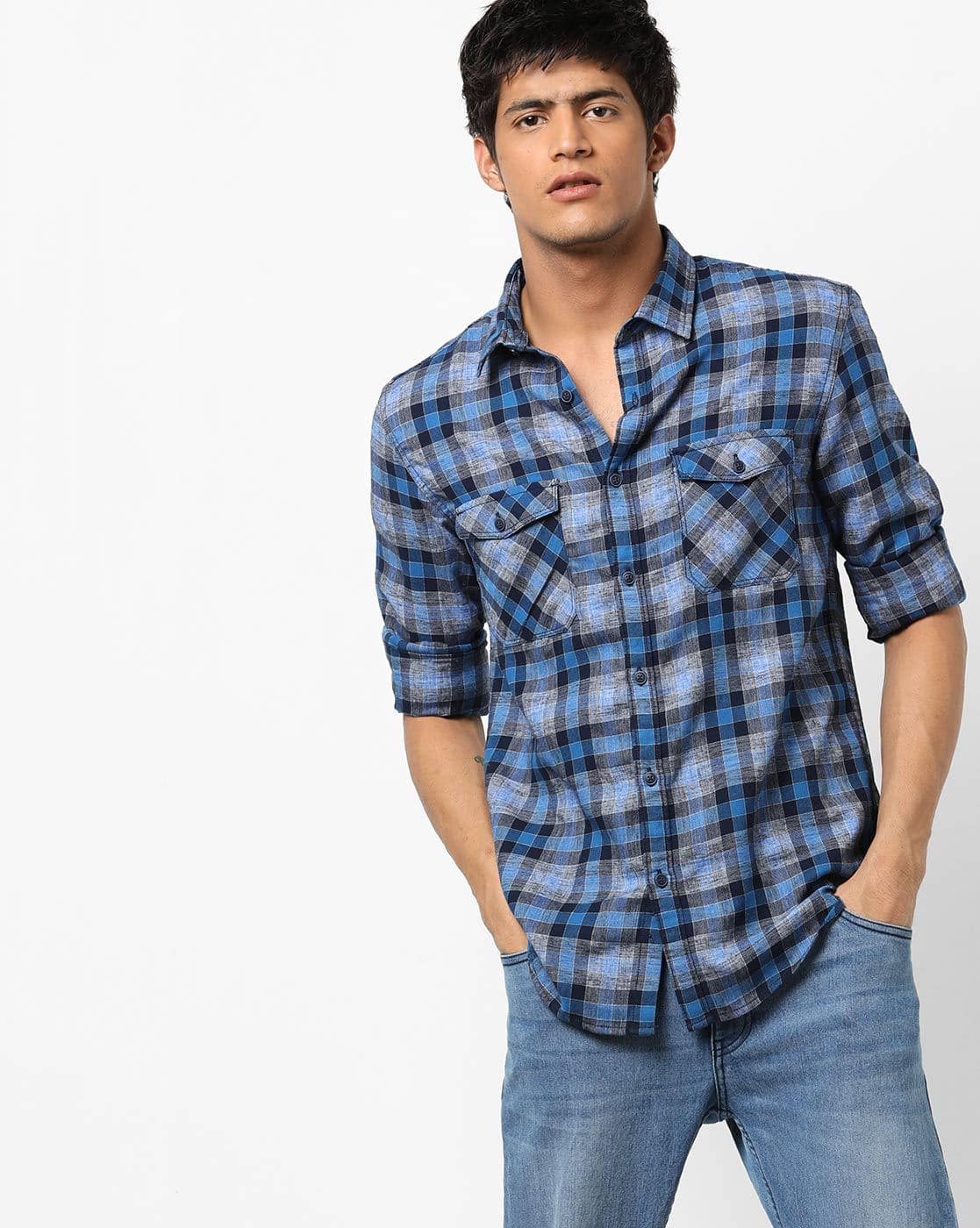 blue double pocket shirt
