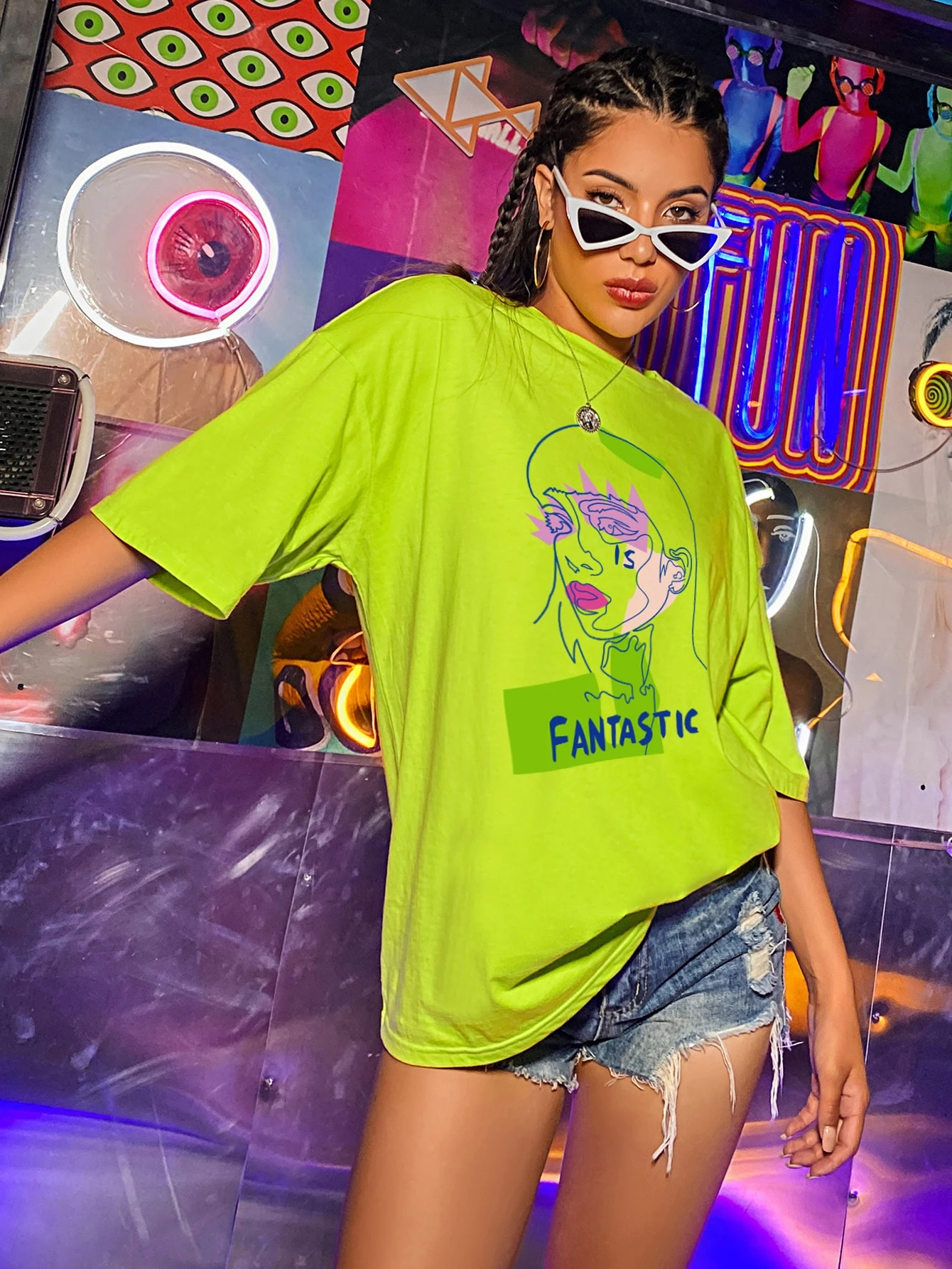 bright green graphic tee