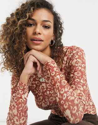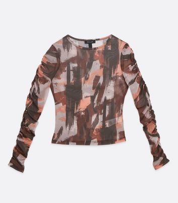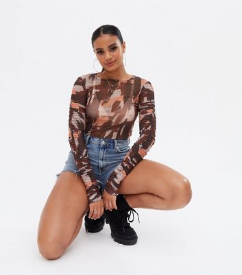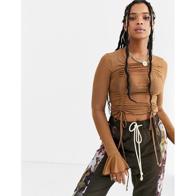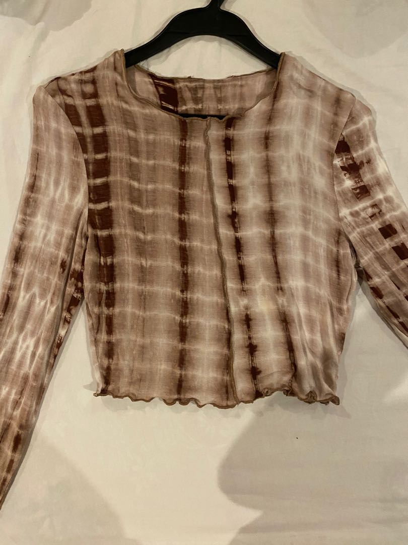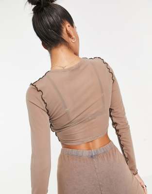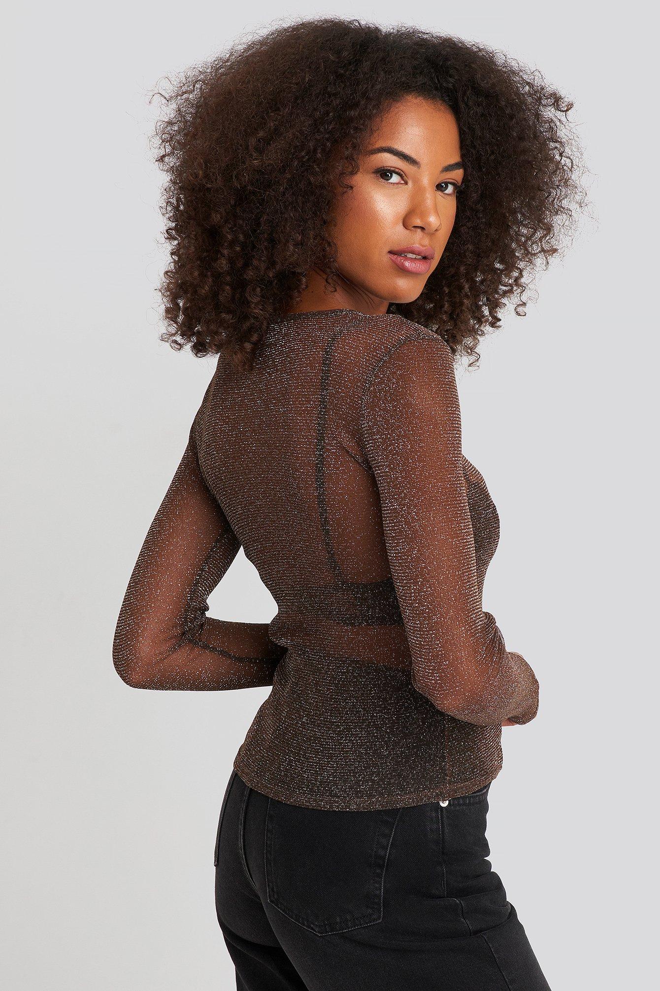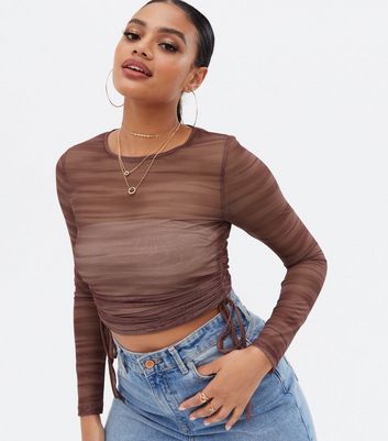 brown long sleeve mesh top