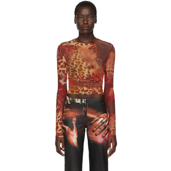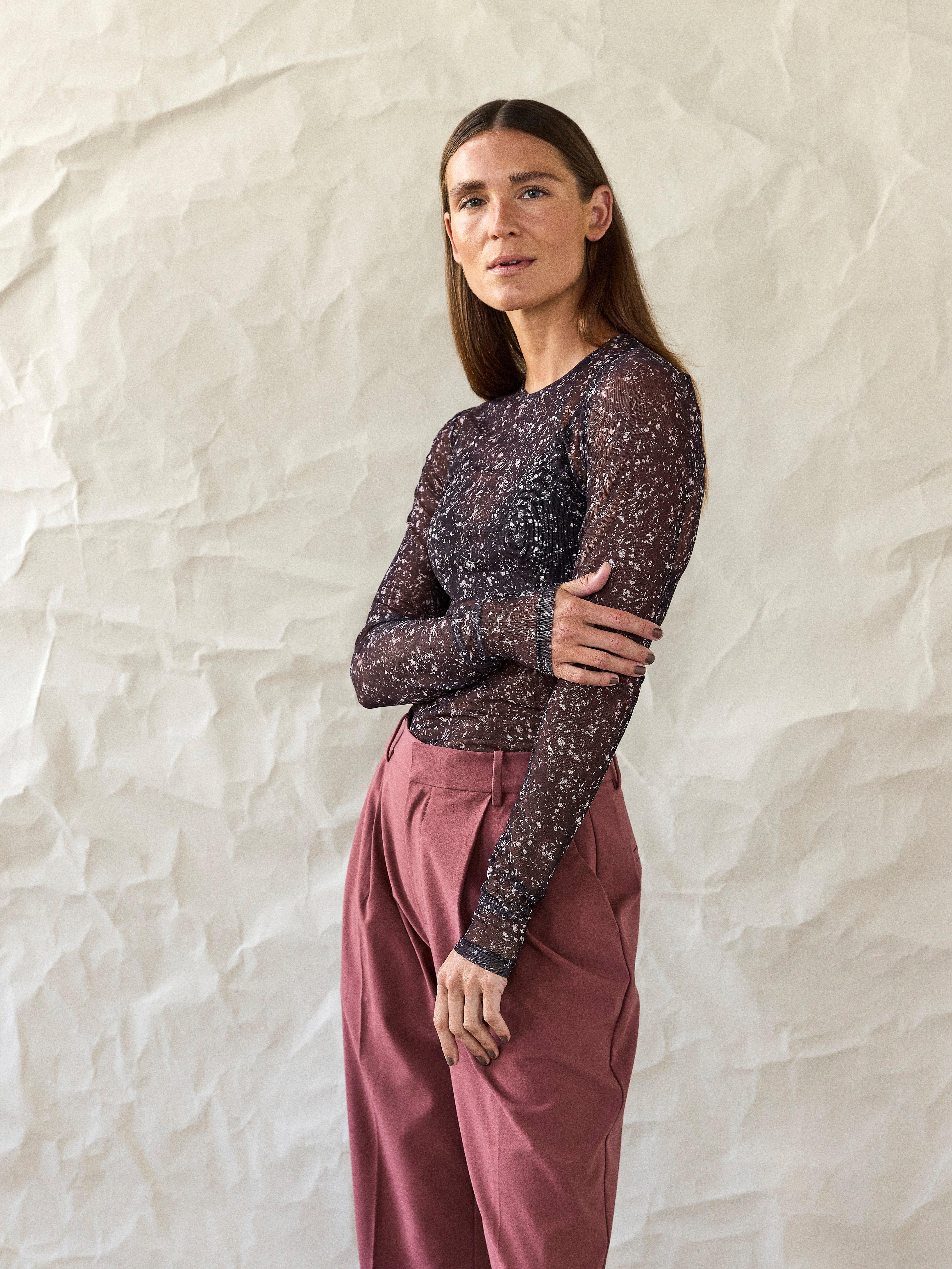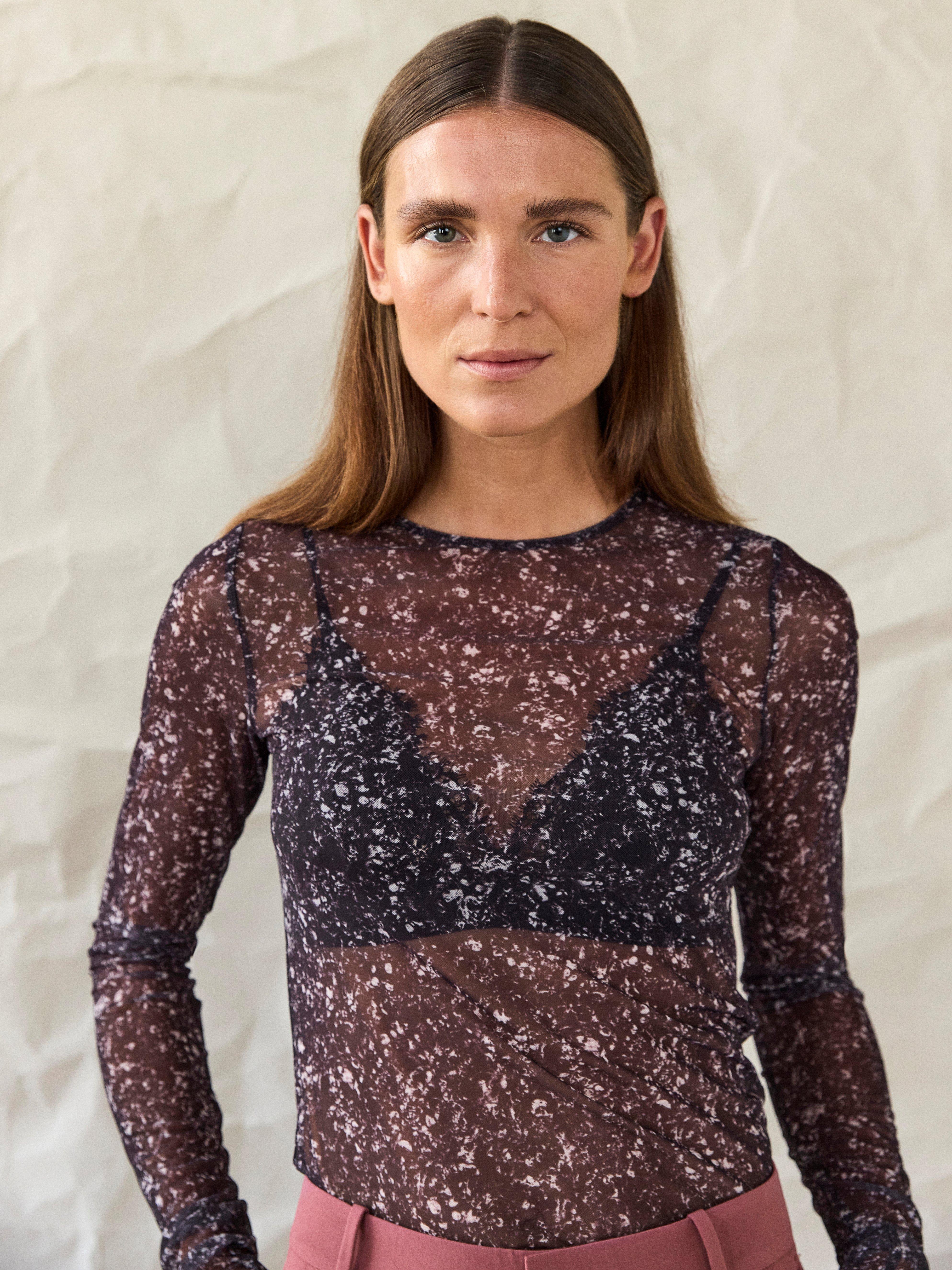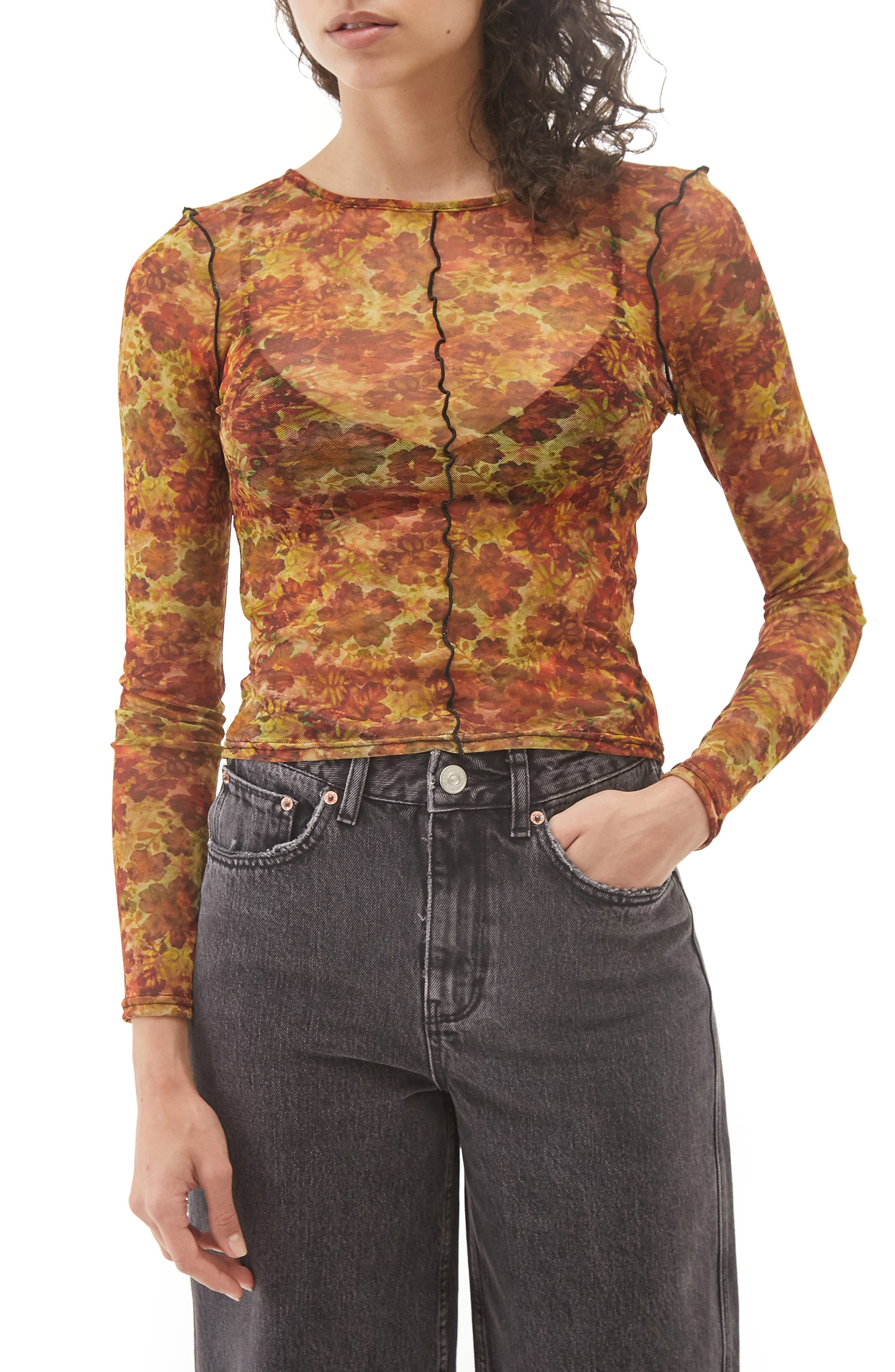 brown long sleeve mesh top