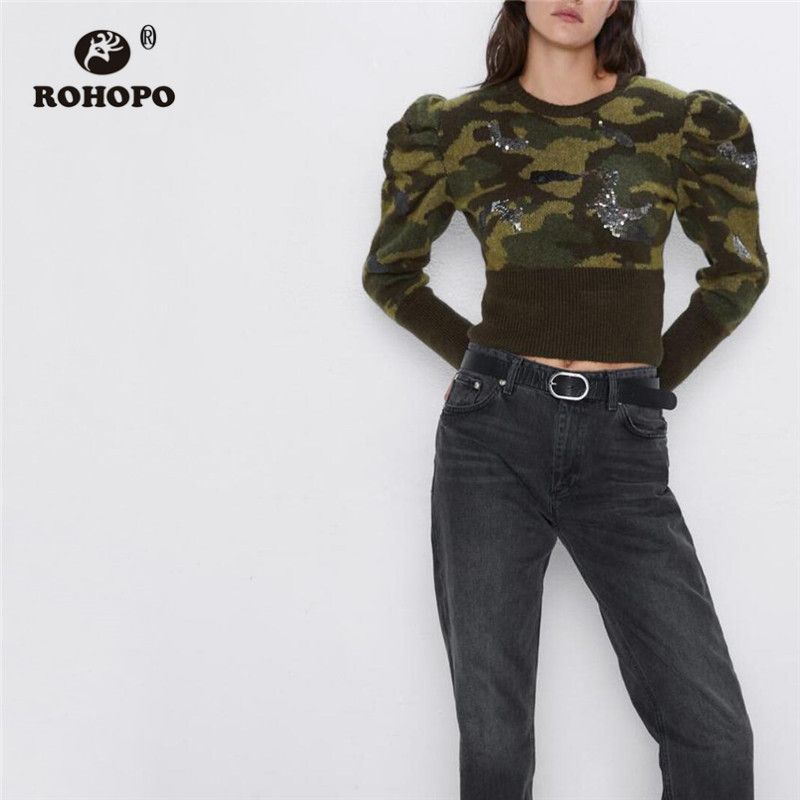 camo puff sleeve top