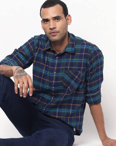 checked shirt with jeans