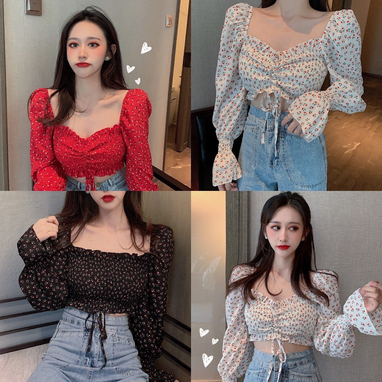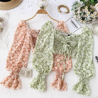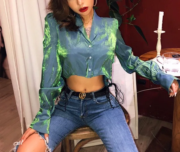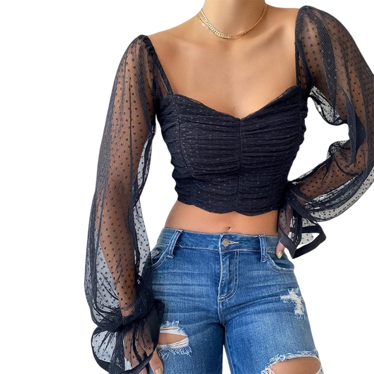 chiffon crop top long sleeve