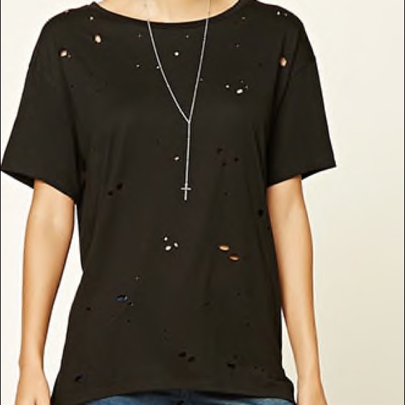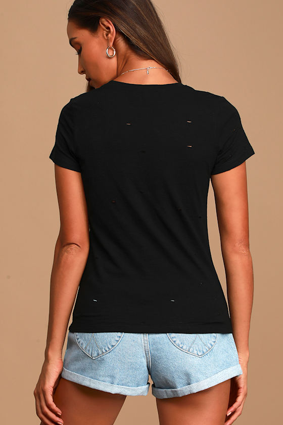 distressed black tee
