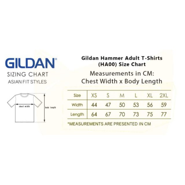 gildan hammer tee size chart