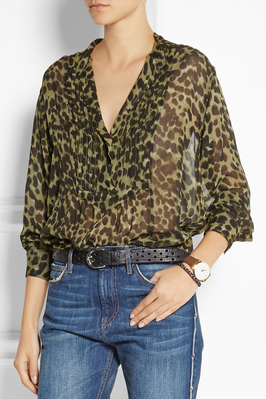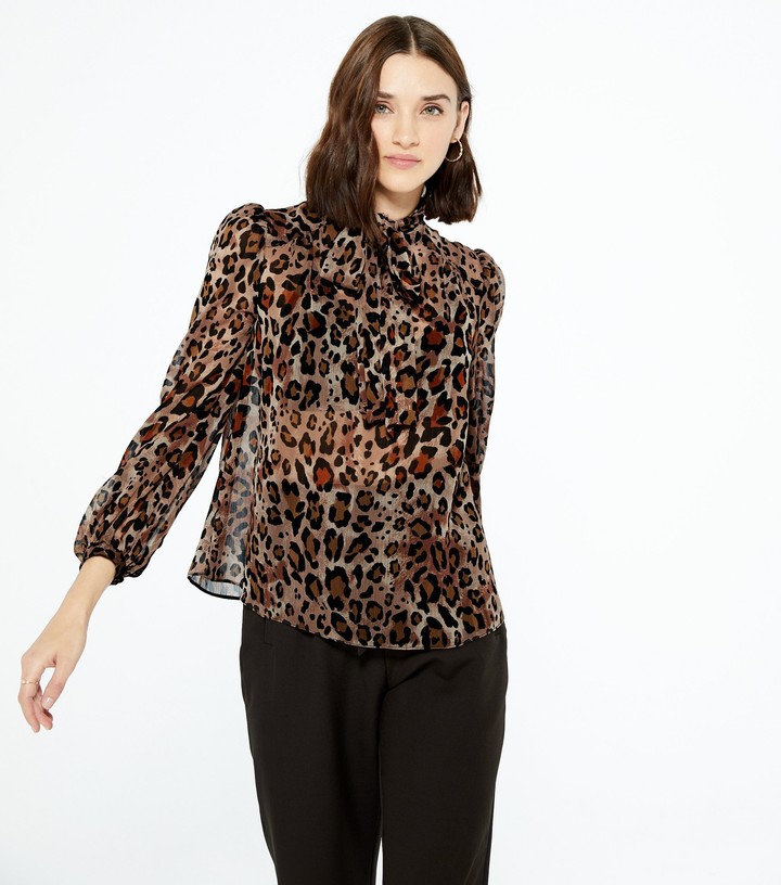 leopard print chiffon blouse