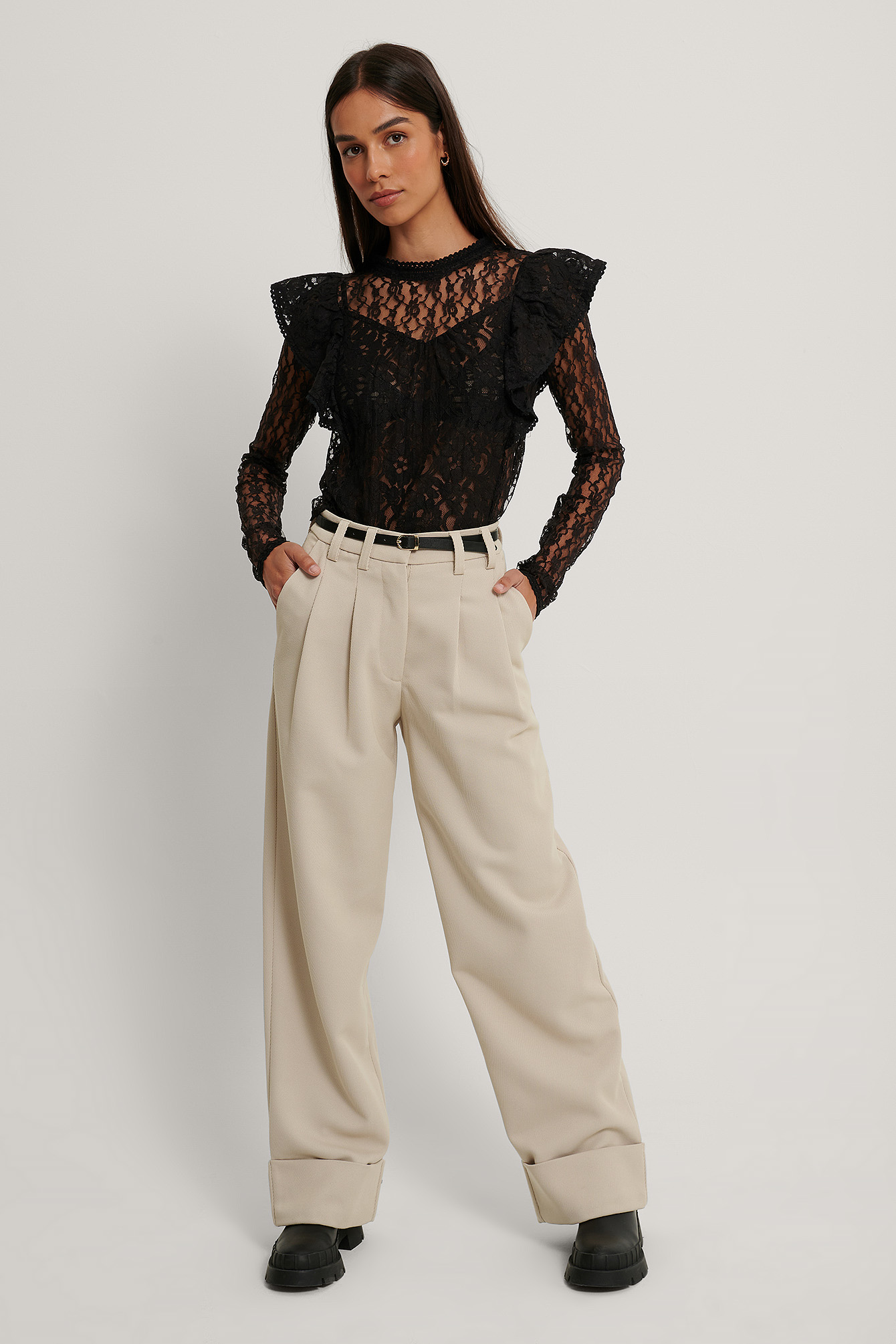 long sleeve flounce top