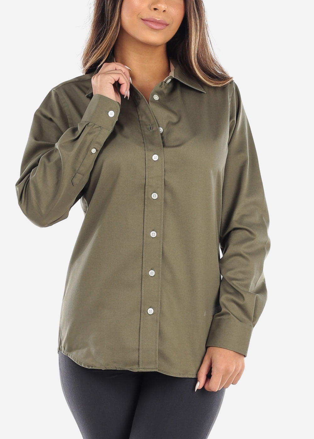 olive green button shirt