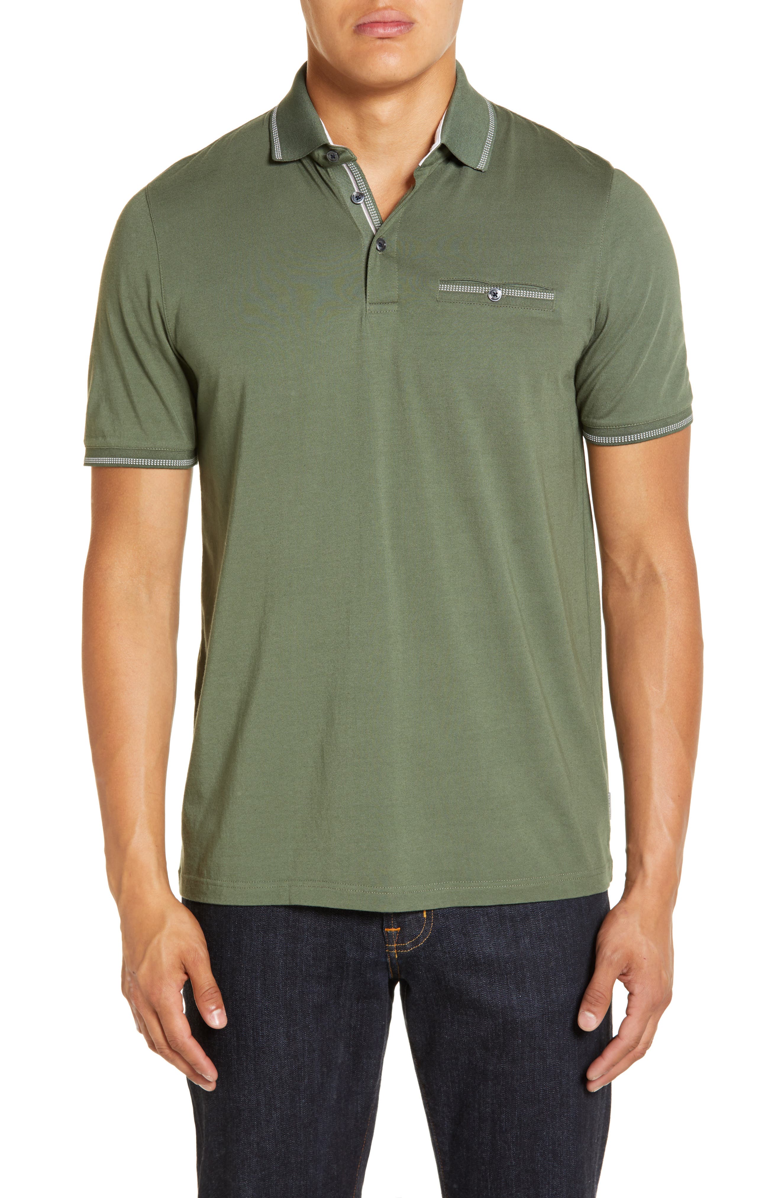 olive green collared shirt