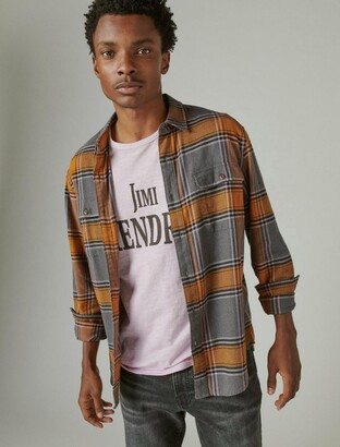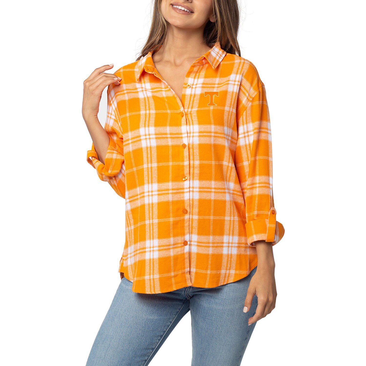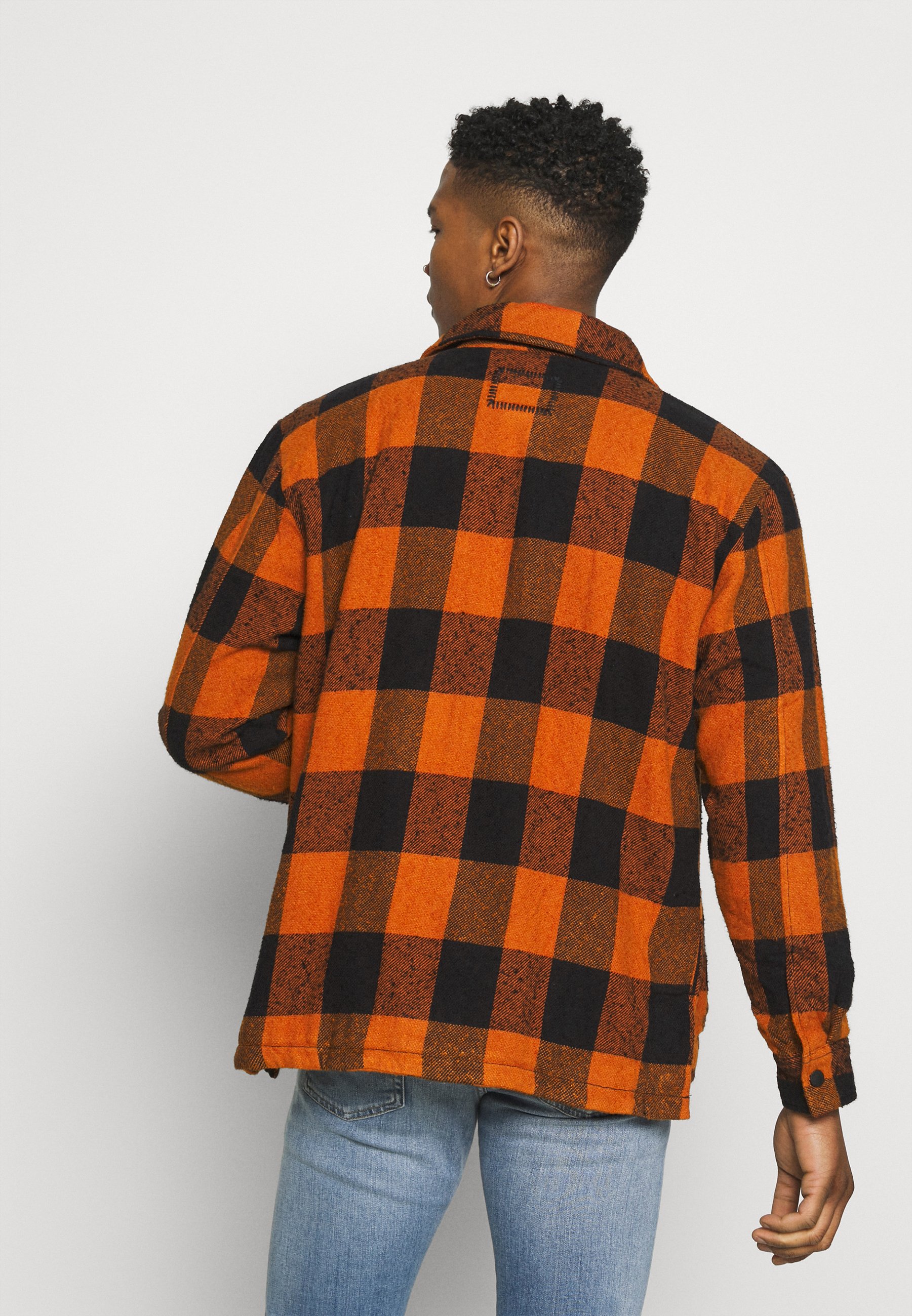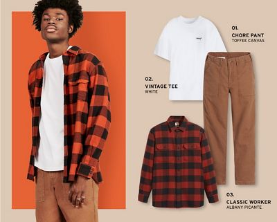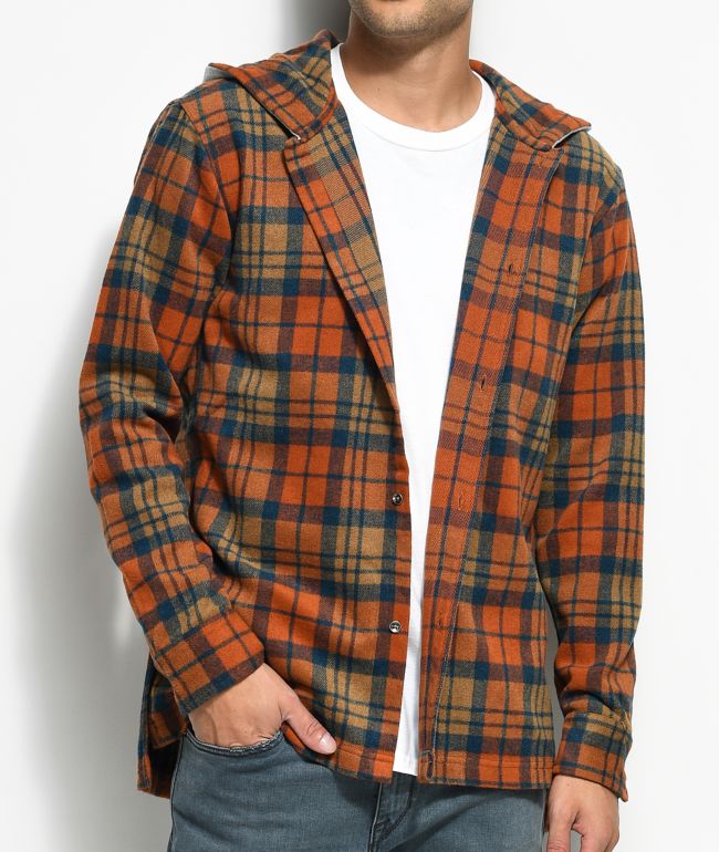 orange flannel outfit