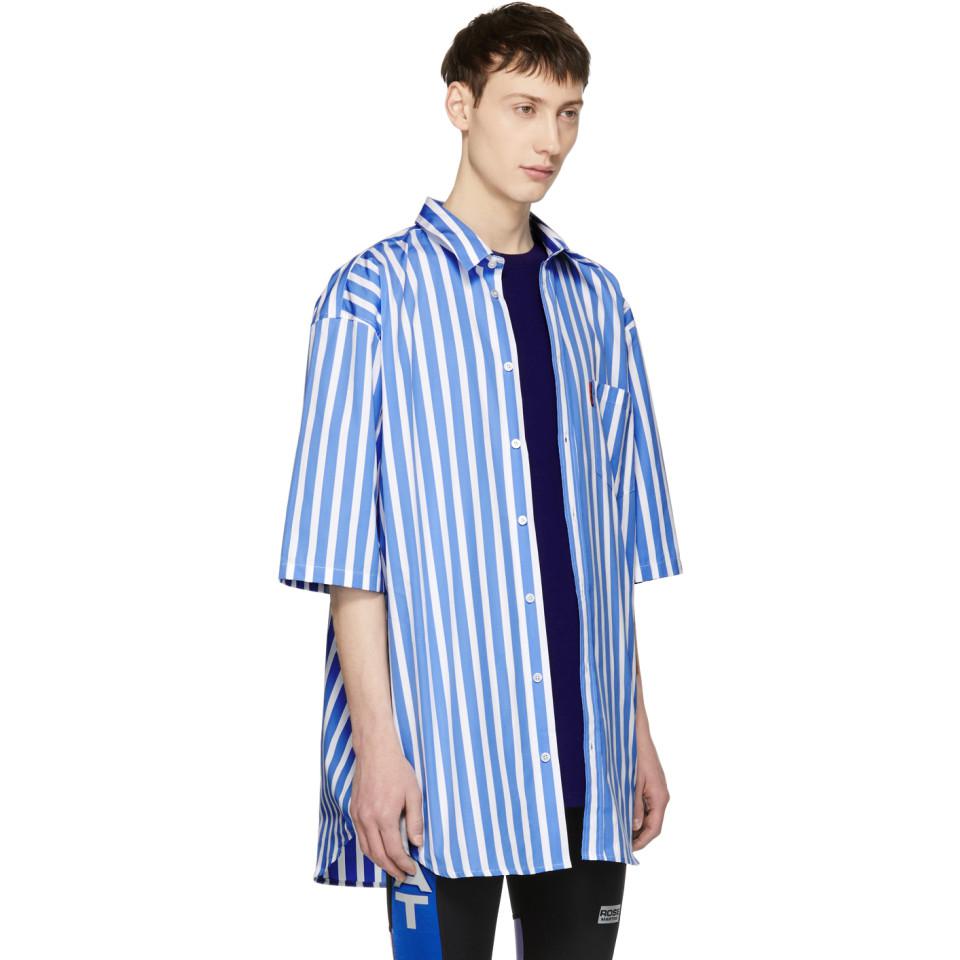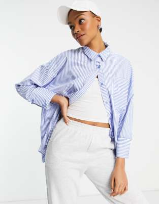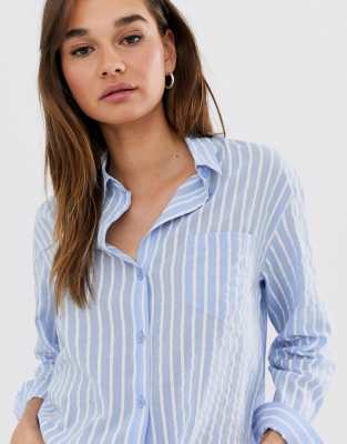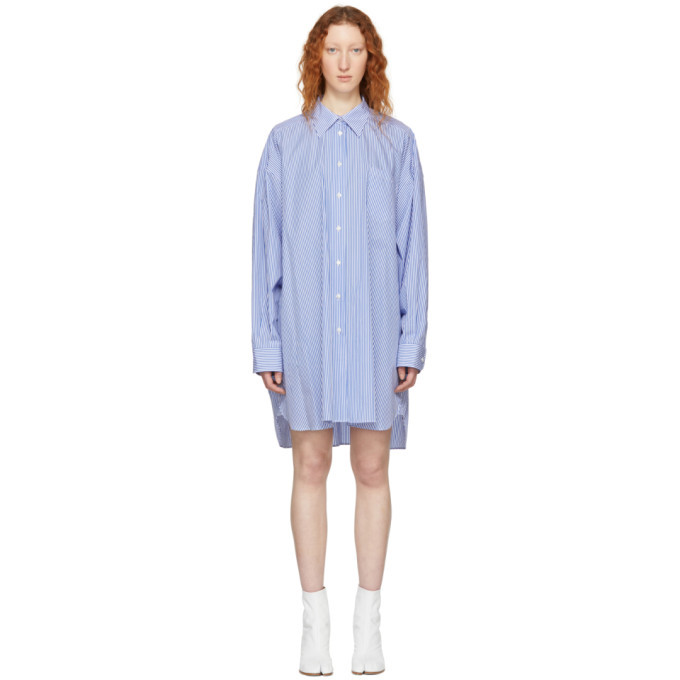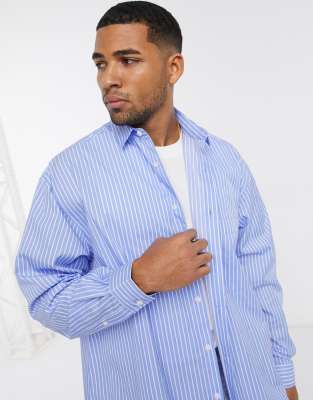 oversized blue and white striped shirt