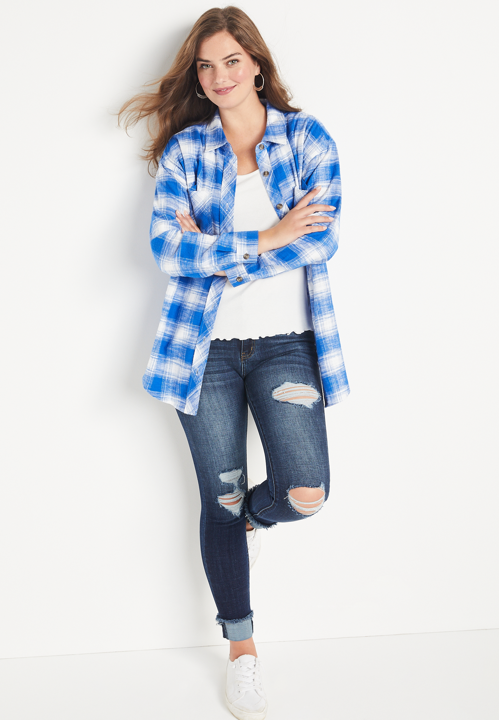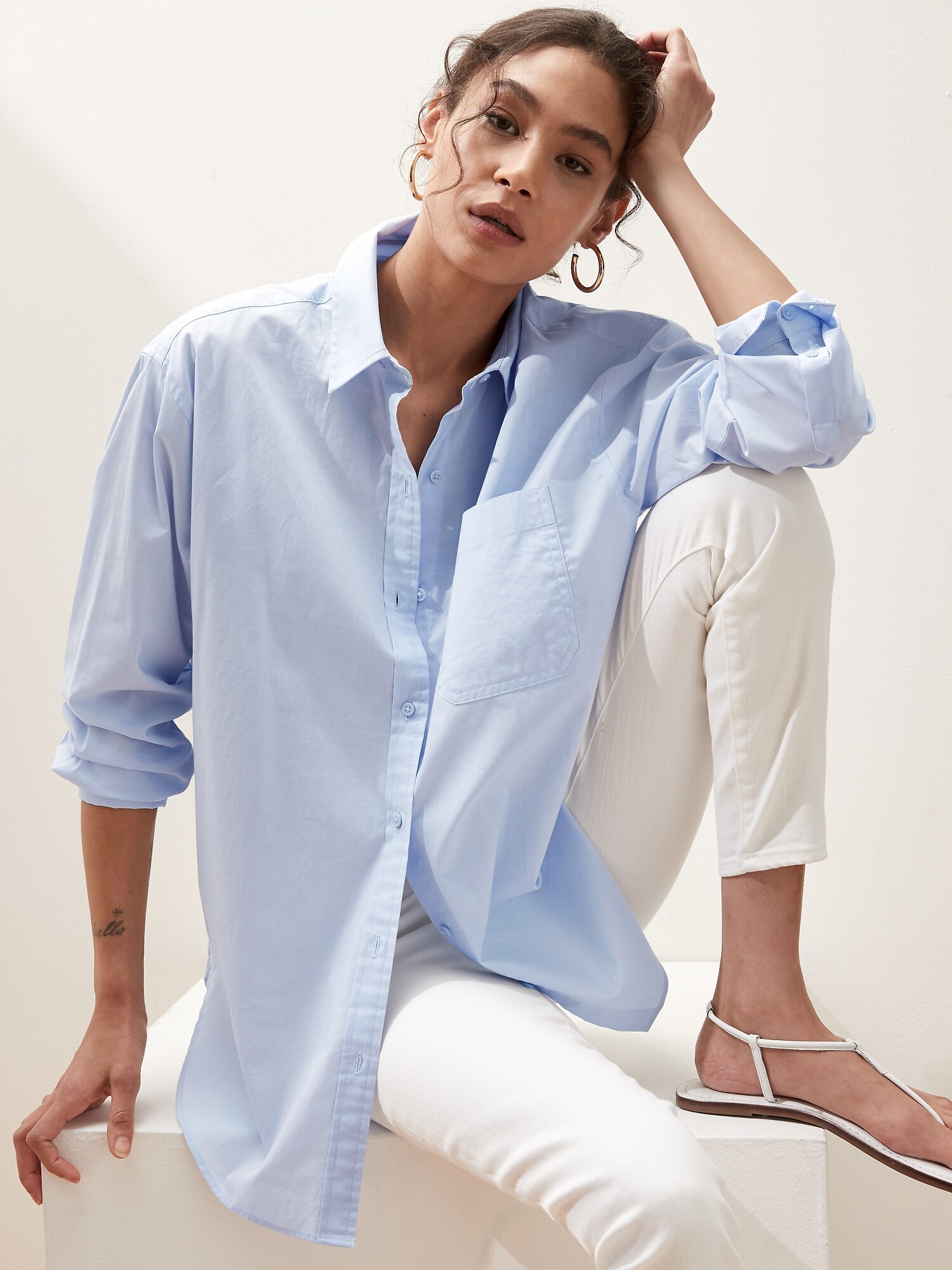 oversized blue button down shirt