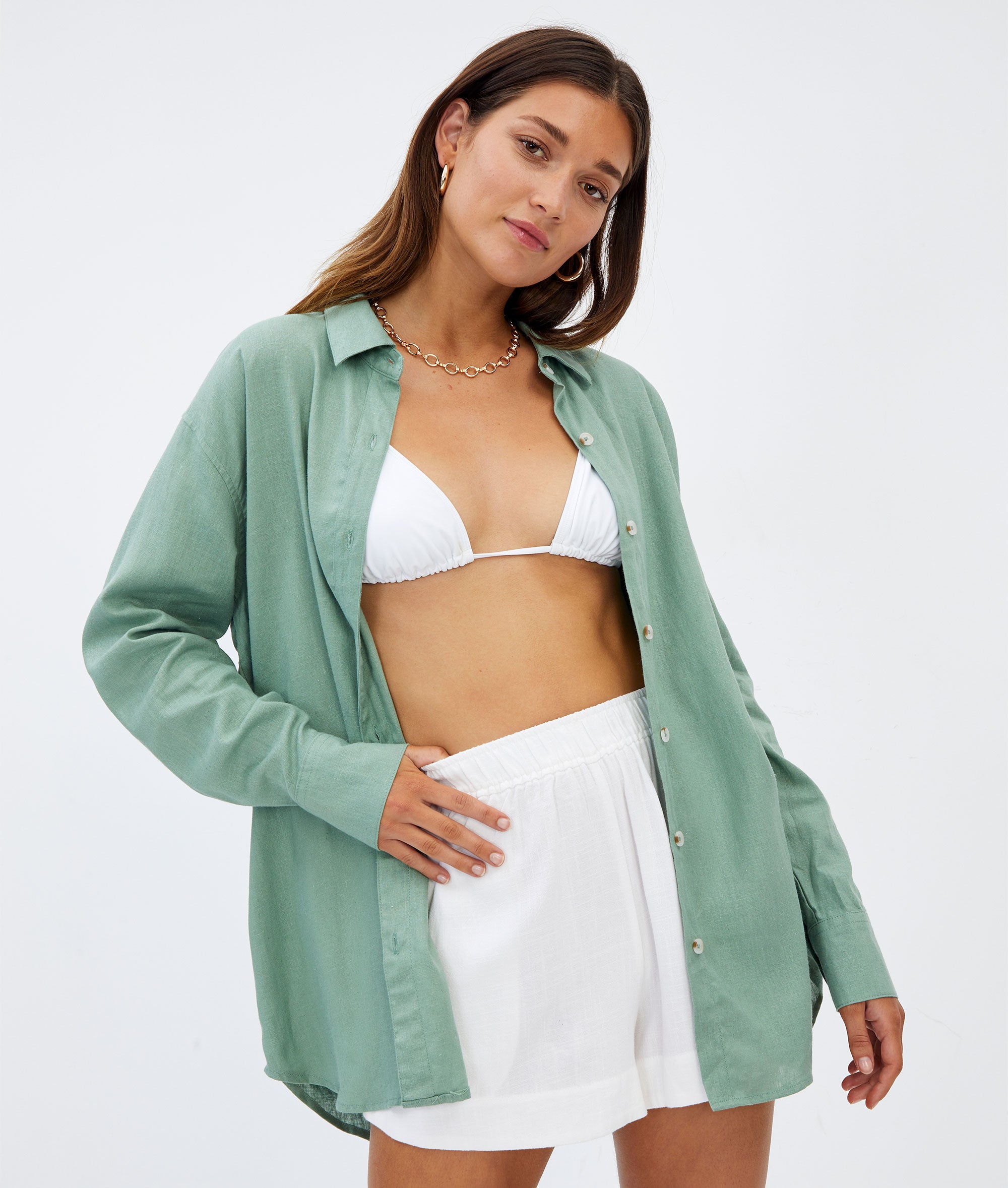 oversized linen button up