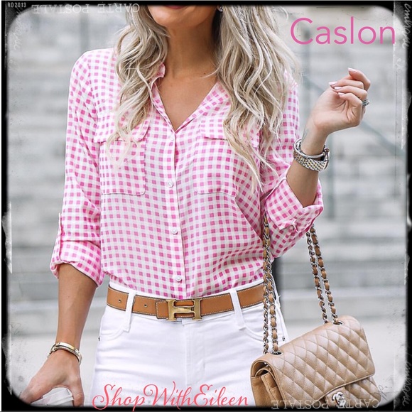 pink white check shirt