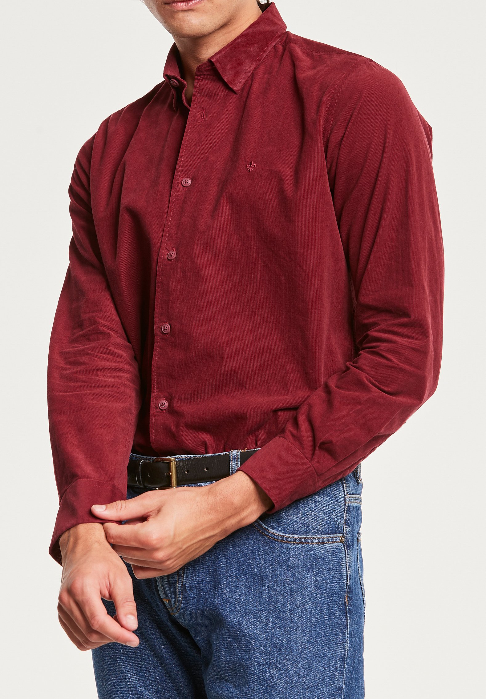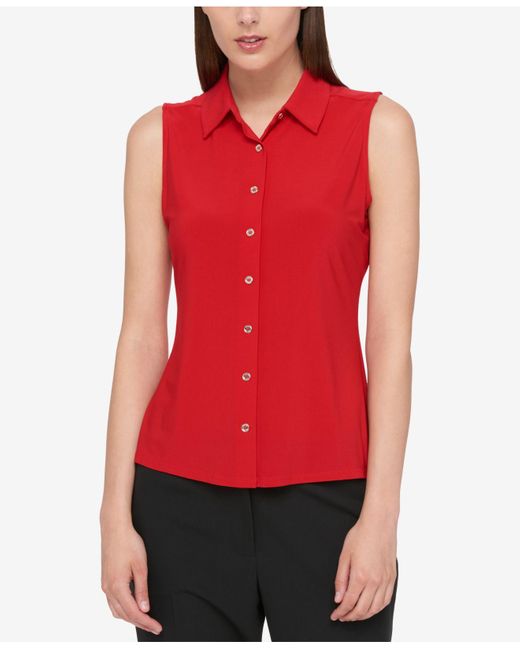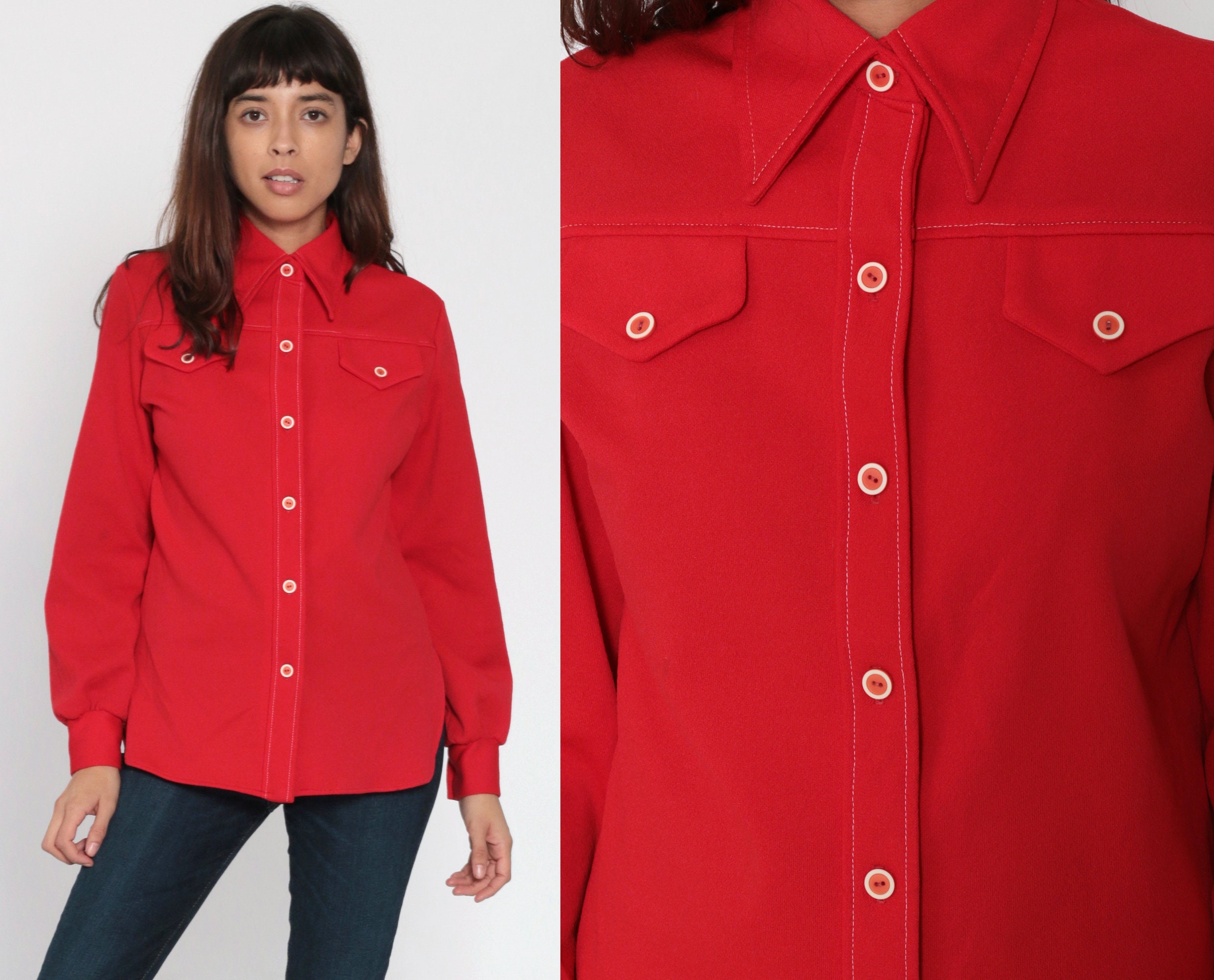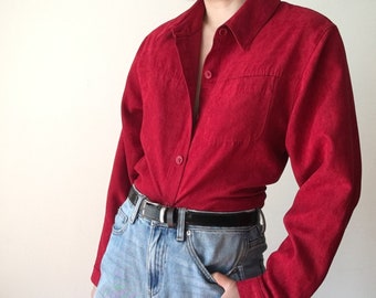 plain red button up shirt