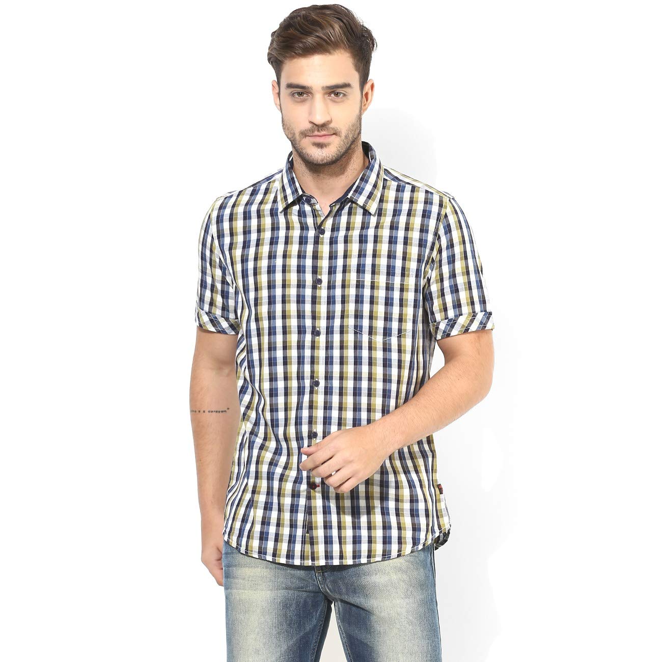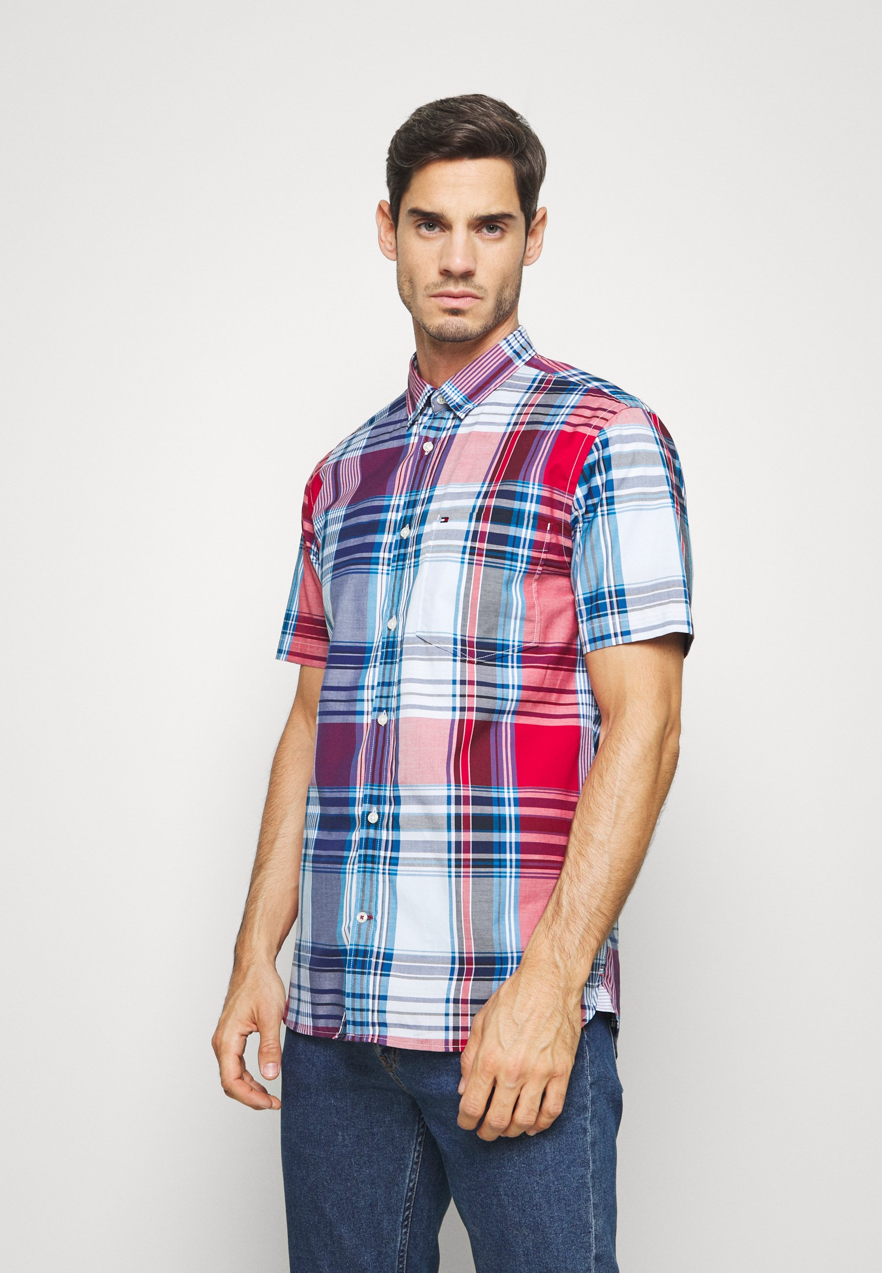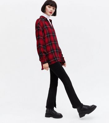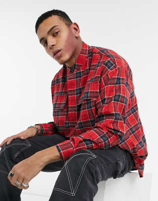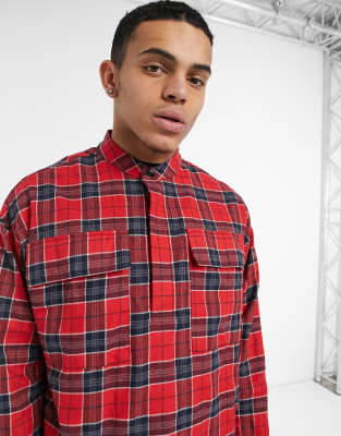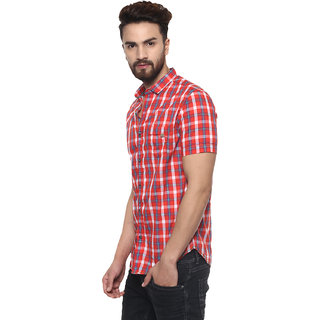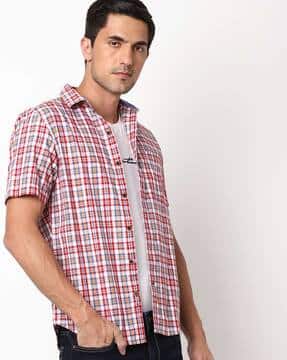 red check half shirt