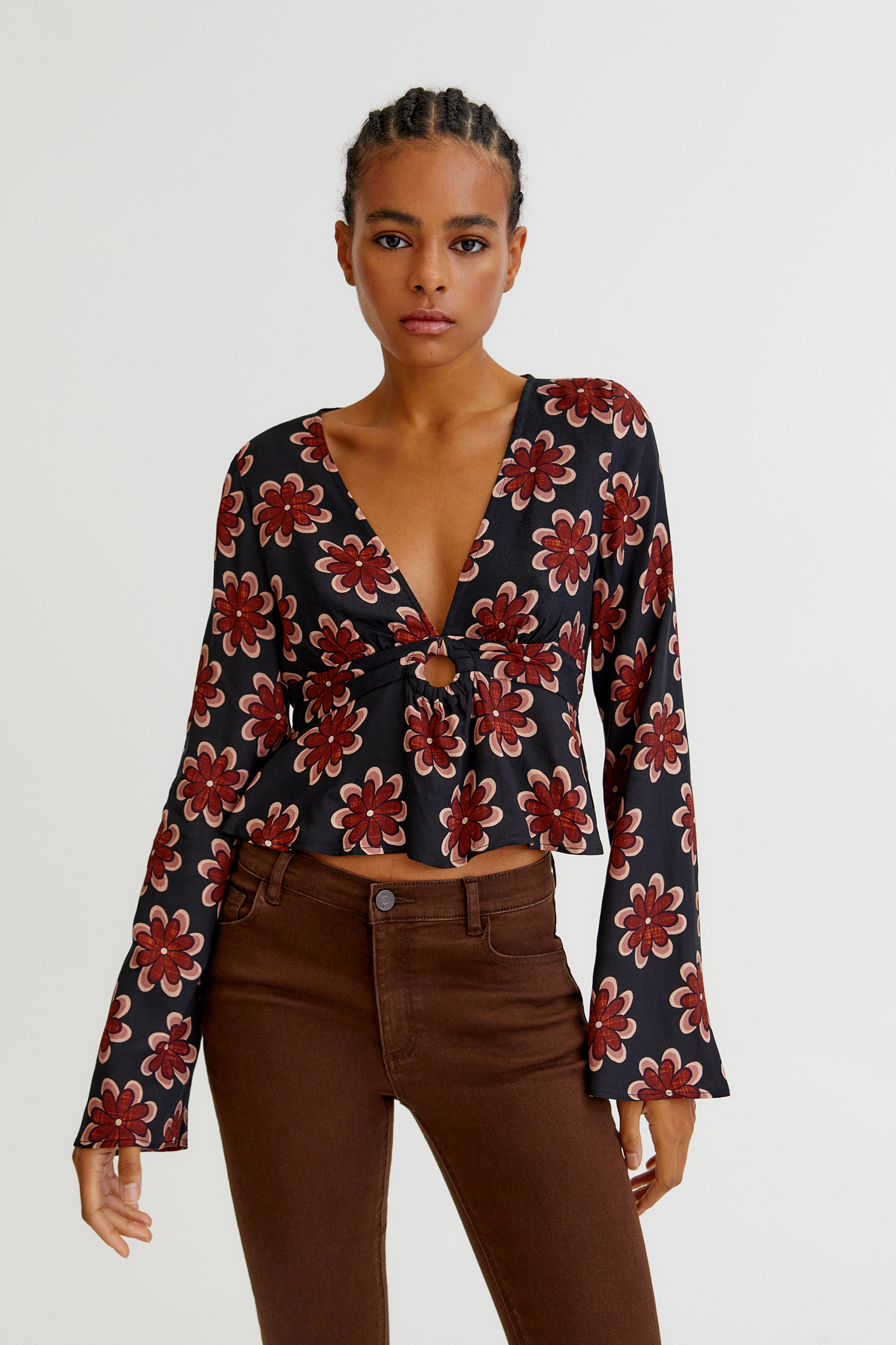 retro floral blouse