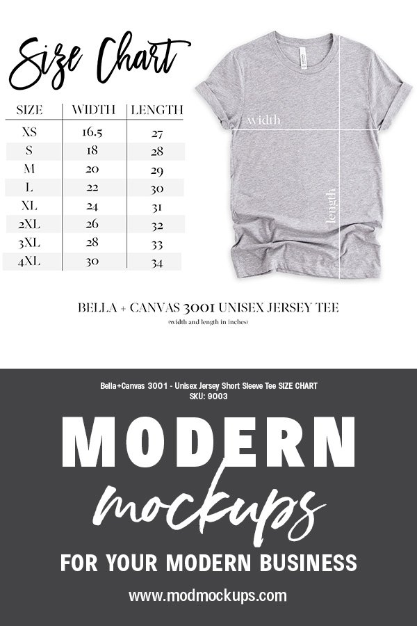 size chart bella canvas 3001
