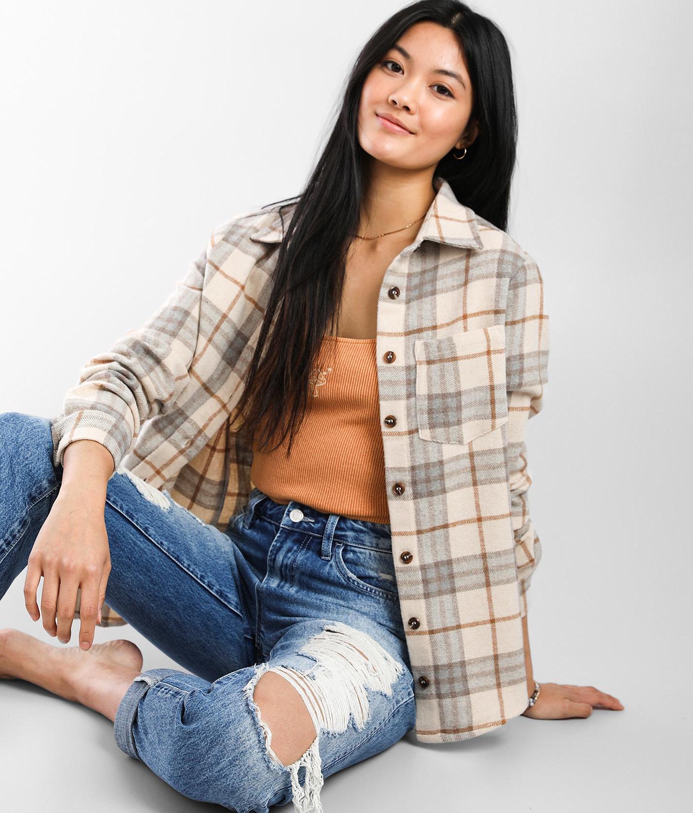 tan oversized flannel
