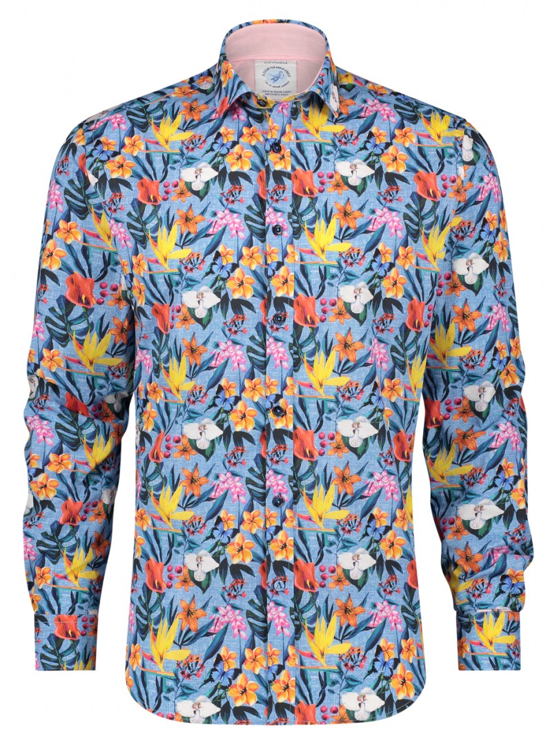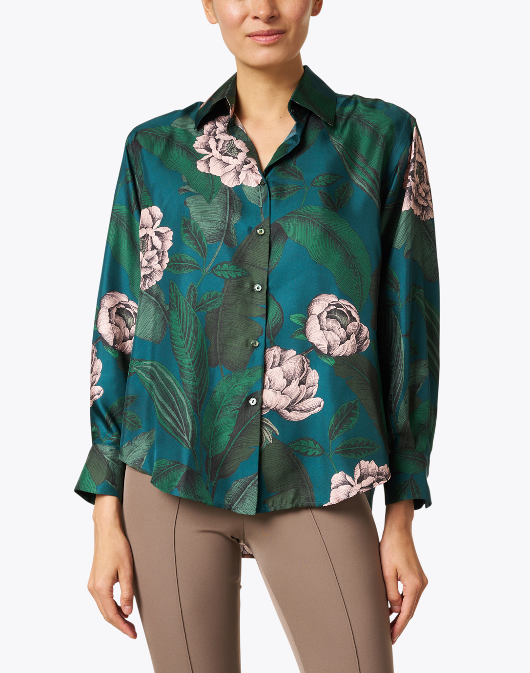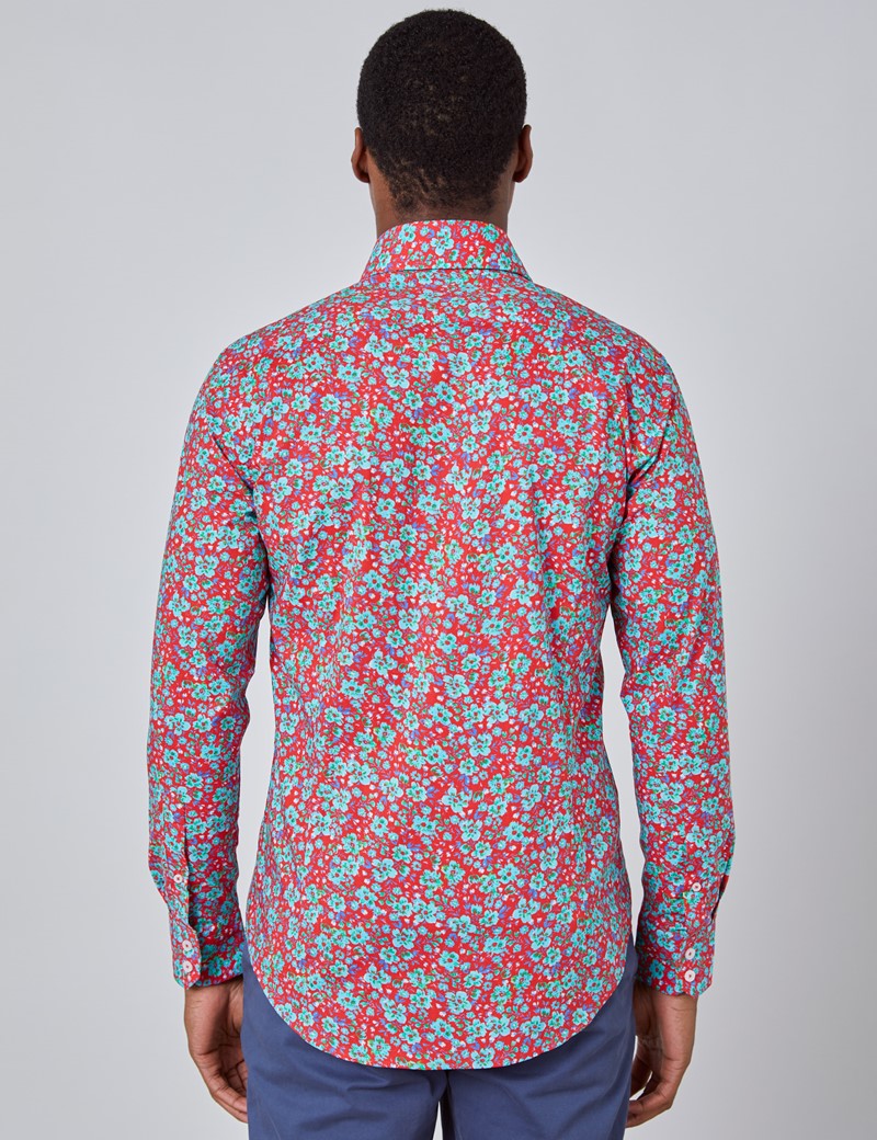 teal floral shirt