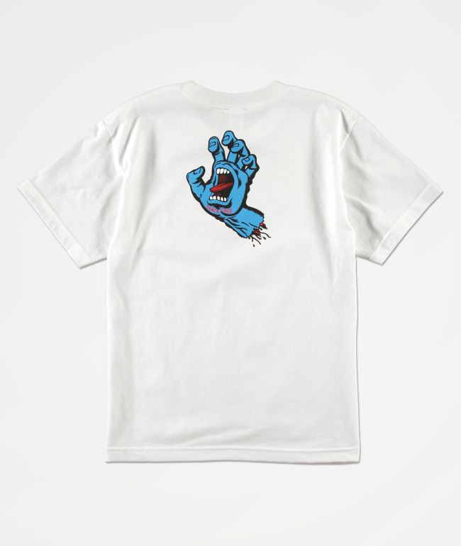 white and blue tee