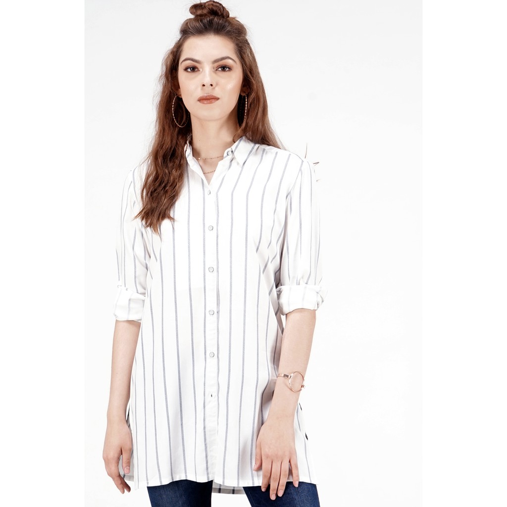 white and navy shirt