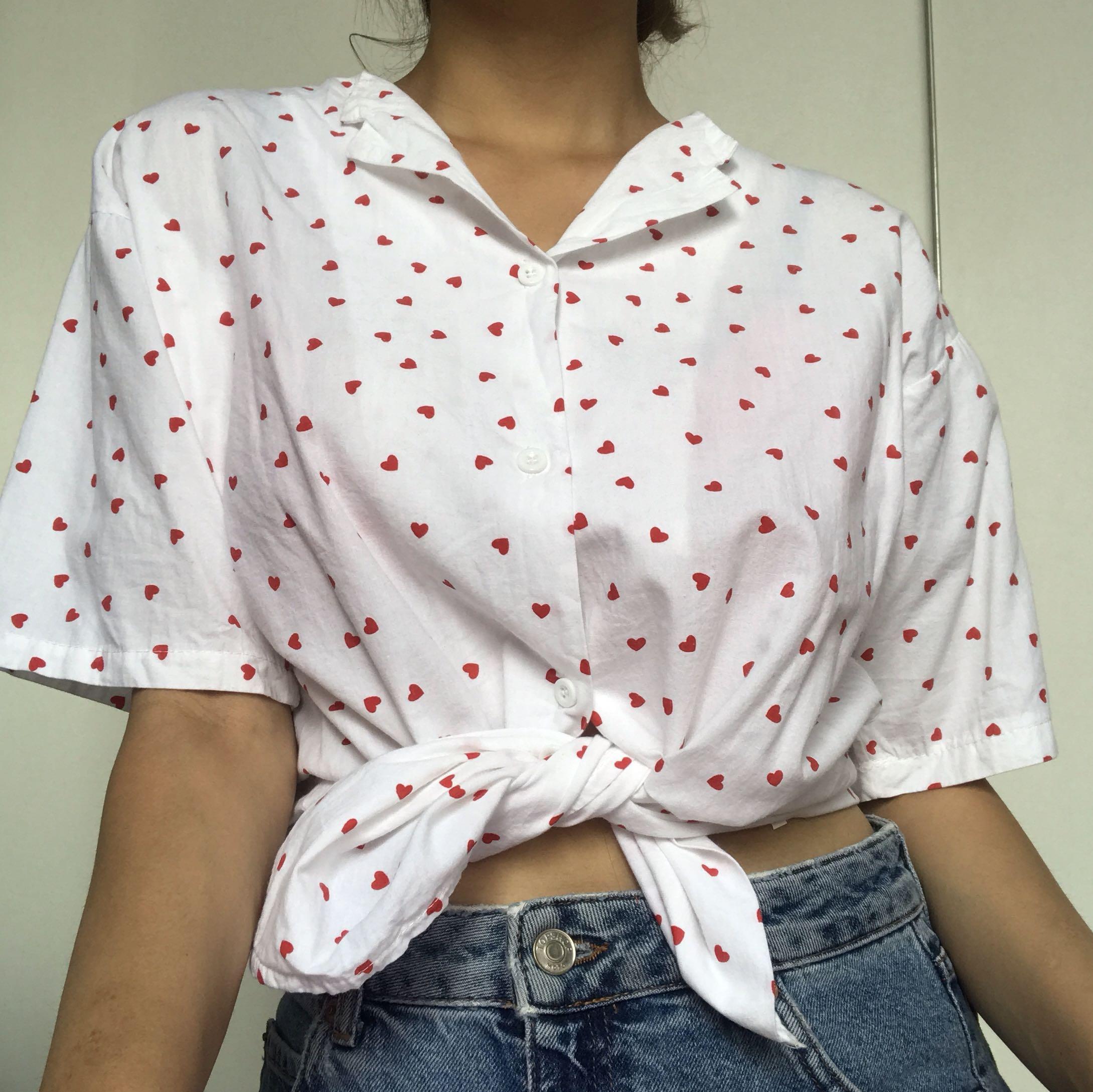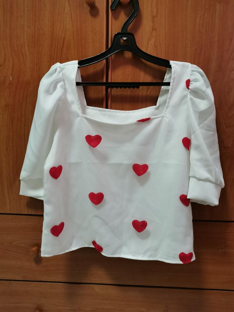 white blouse red hearts