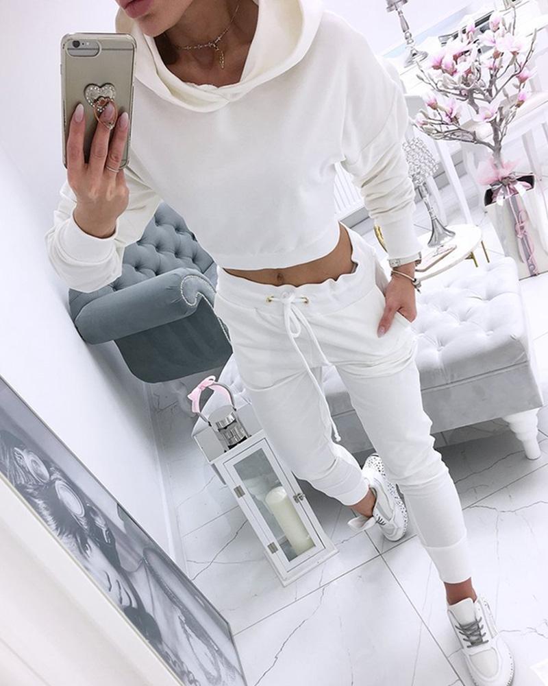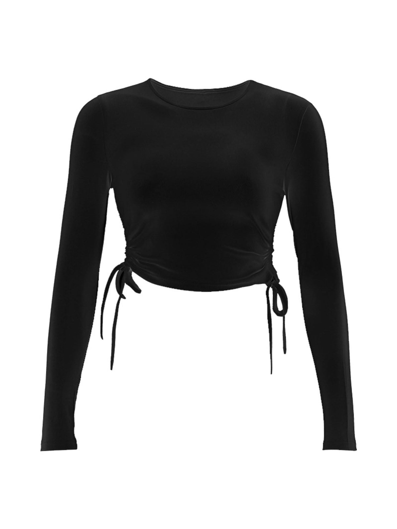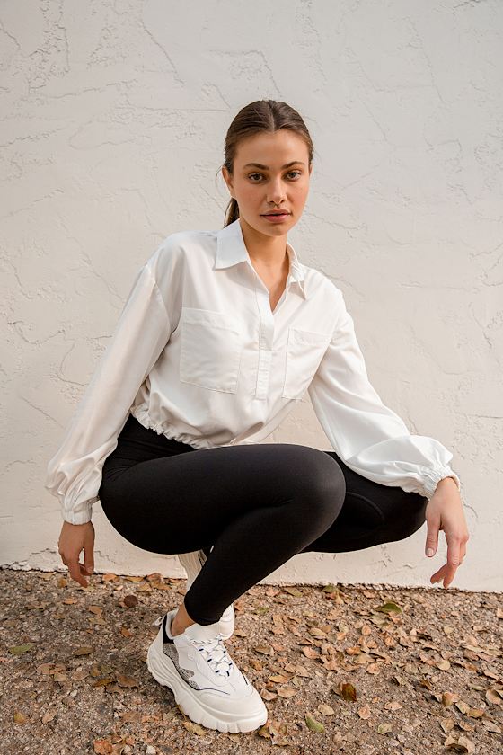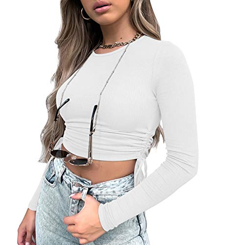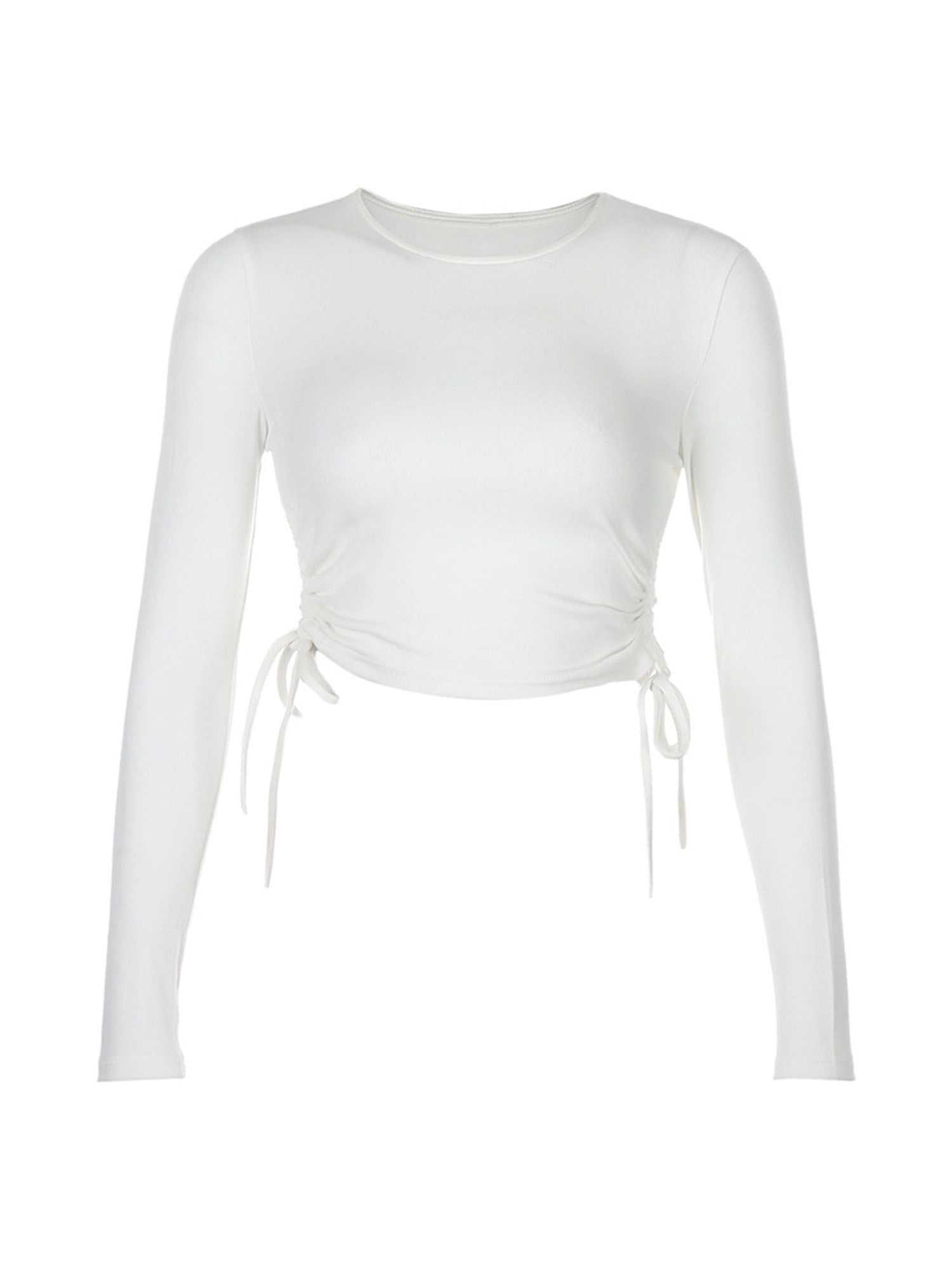 white long sleeve drawstring top