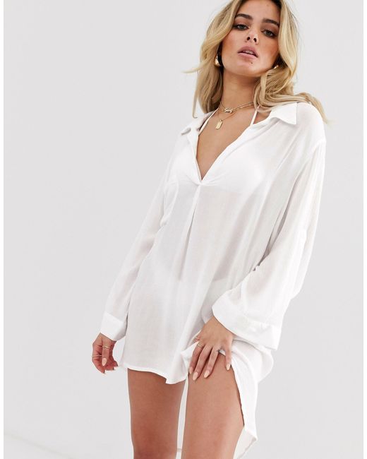 white oversized beach shirt