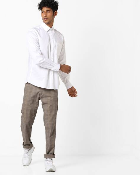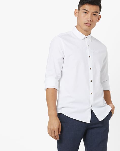 white patterned shirt