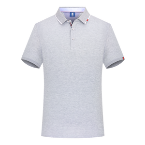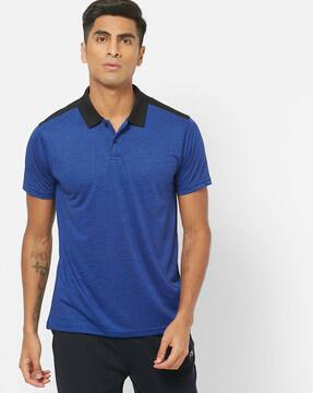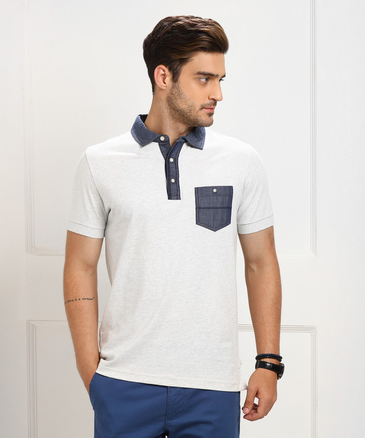 white polo with blue collar